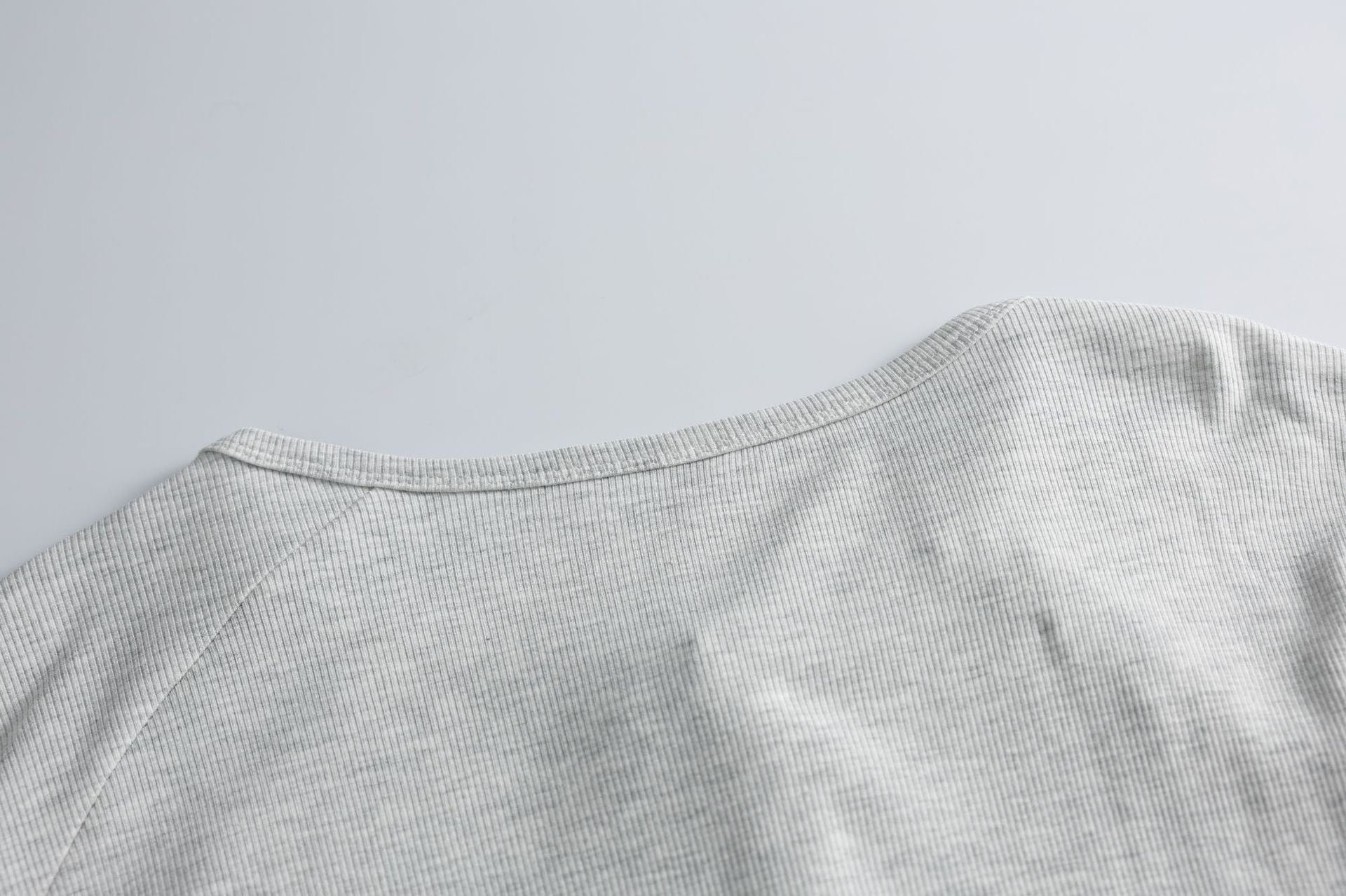 襟元から肩にかけて並んだボタンディテールが印象的なロングスリーブトップス。