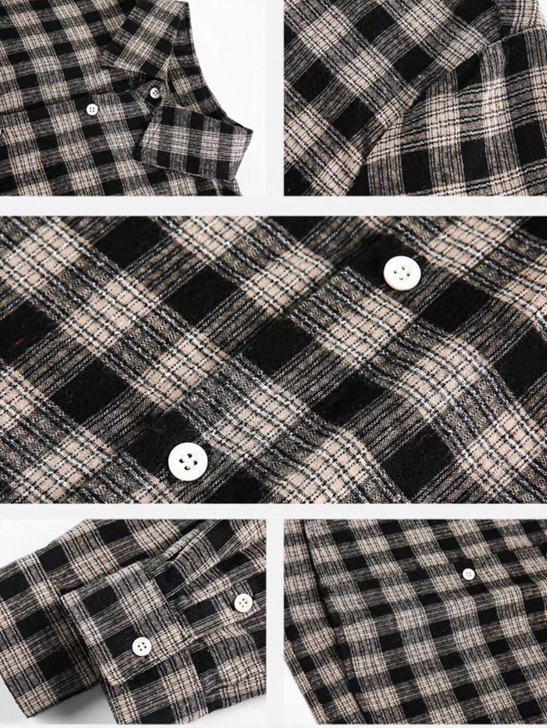 カジュアルでありながら洗練された雰囲気を漂わせる「アーバンチェッコットン100%生地を使用した、クラシックかつ都会的な印象のチェックシャツ。