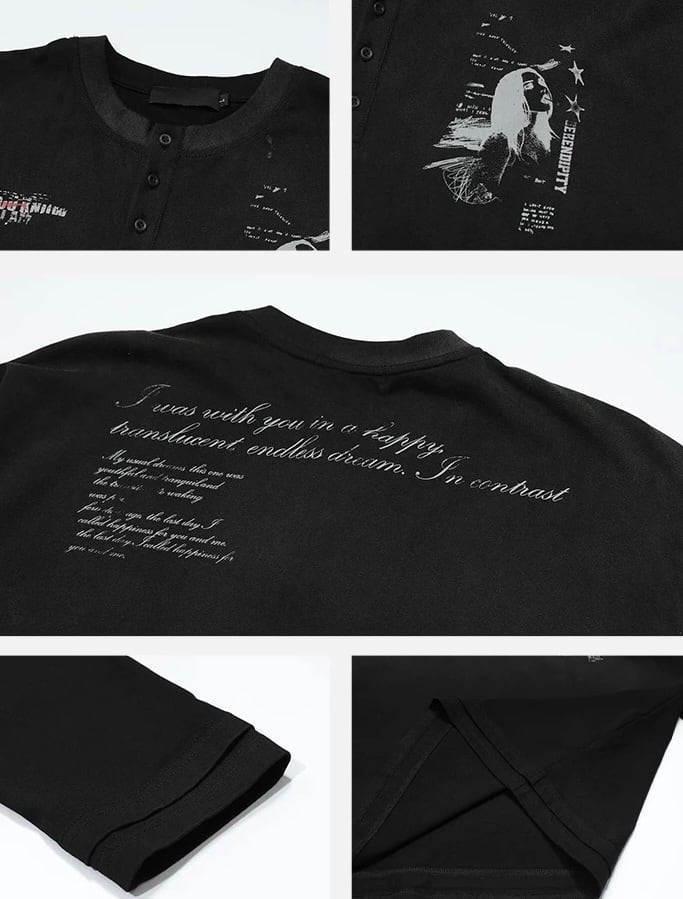 グラフィックヘンリーネックロングスリーブT / Graphic Henley Neck Long Sleeve Tee