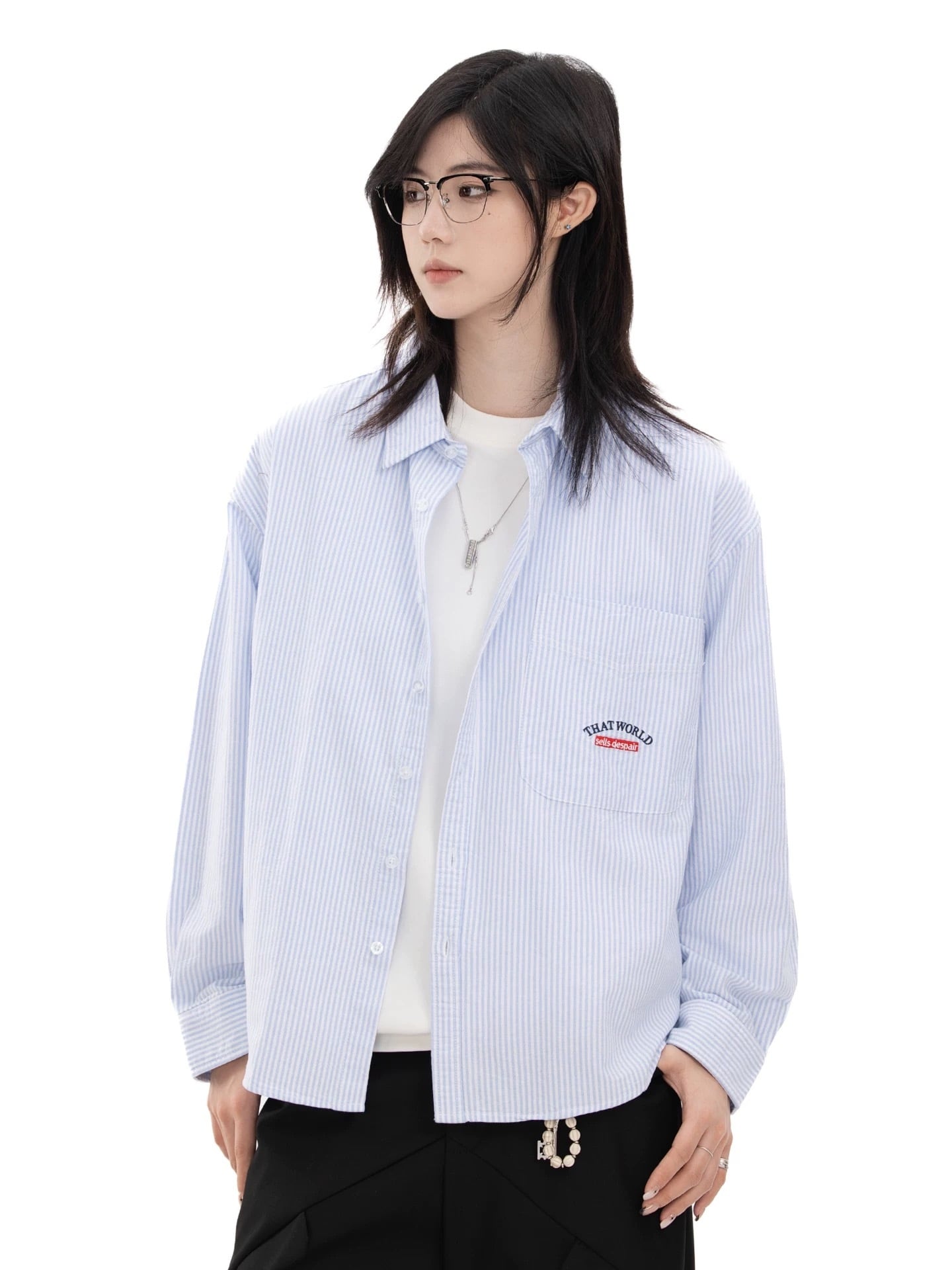 爽やかなストライプと独特な刺繍デザインが存在感を放つリラックスシャツ。