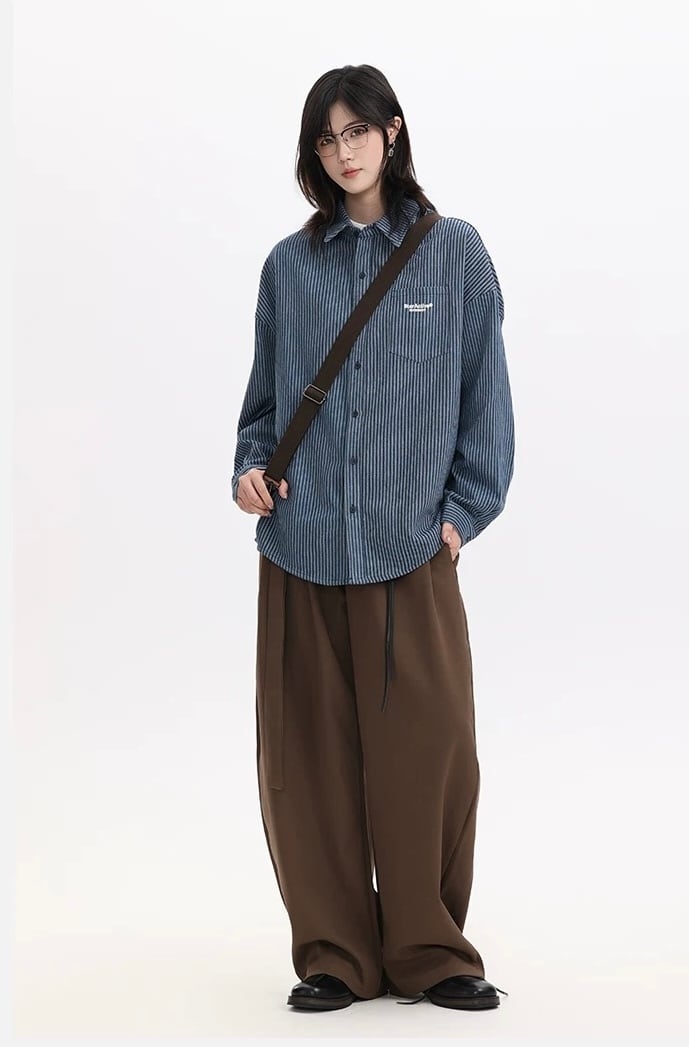 ゆったりとしたシルエットに細めのストライプを落とし込んだルーズシャツ。