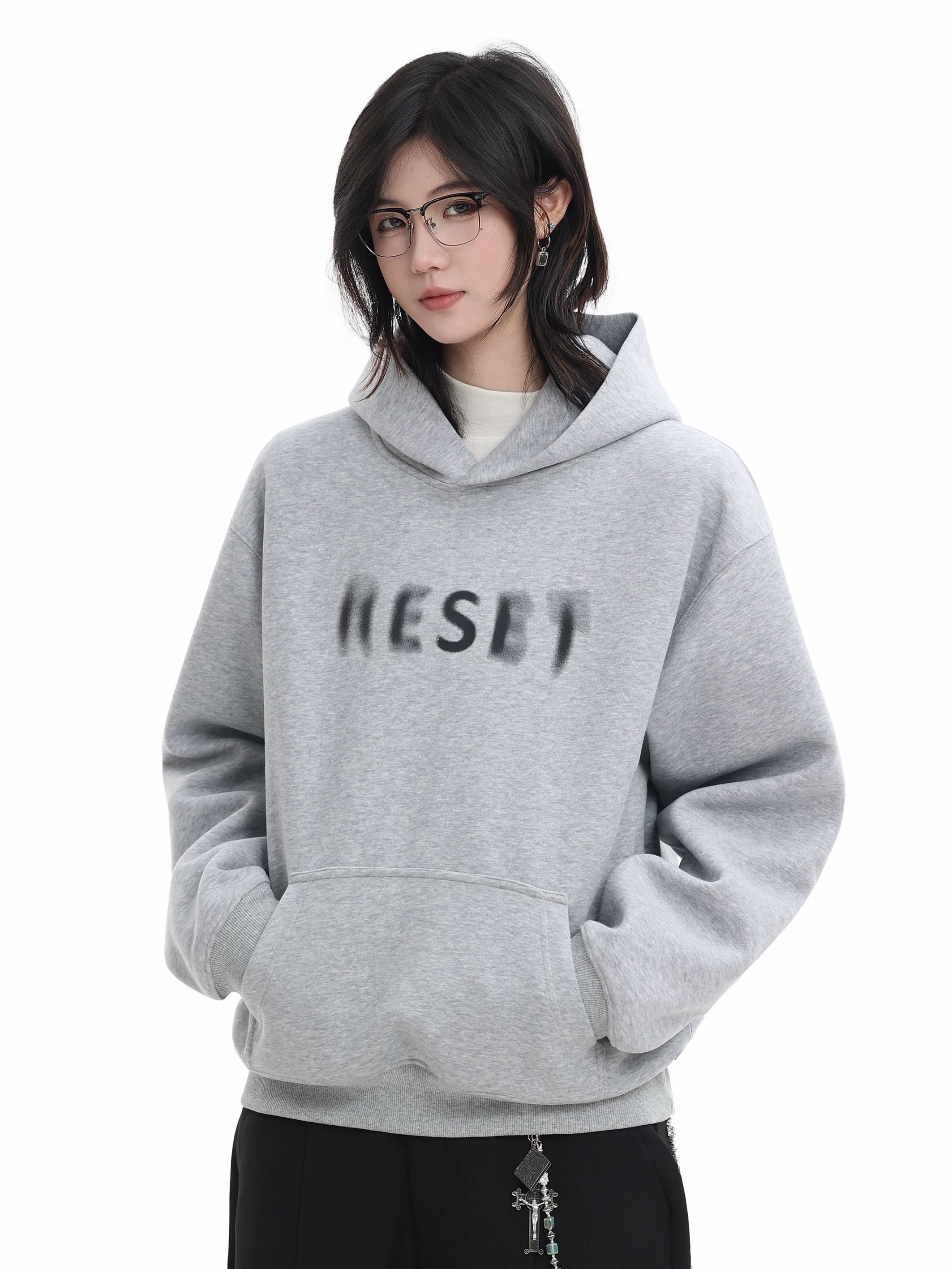 フロントに大胆な「RESET」プリントを施した、ストリートムード漂うフーディー。