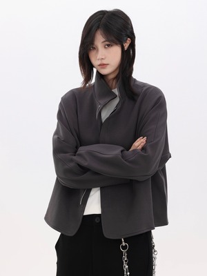 着丈をコンパクトに仕上げた、モードな印象のジャケット。