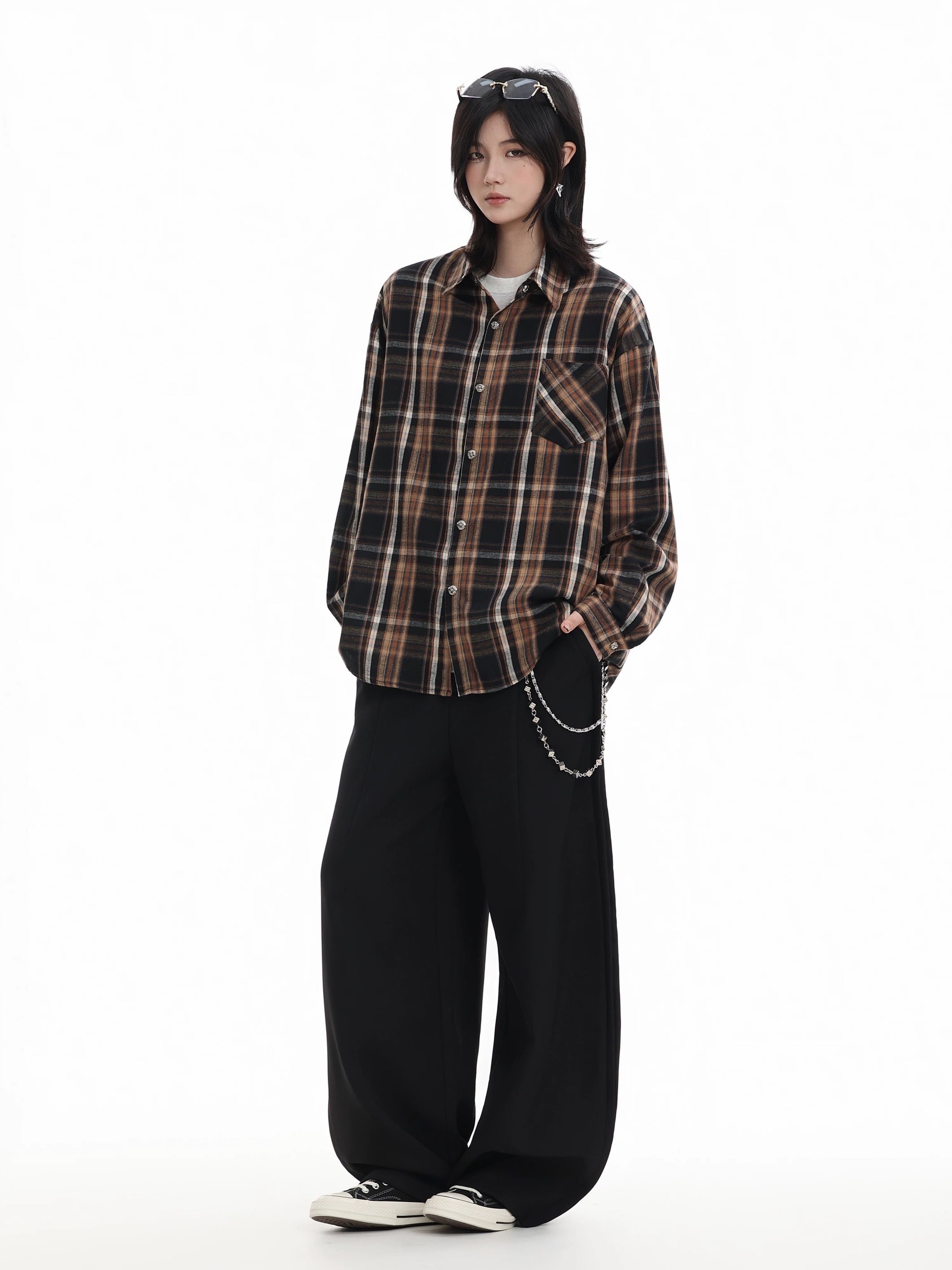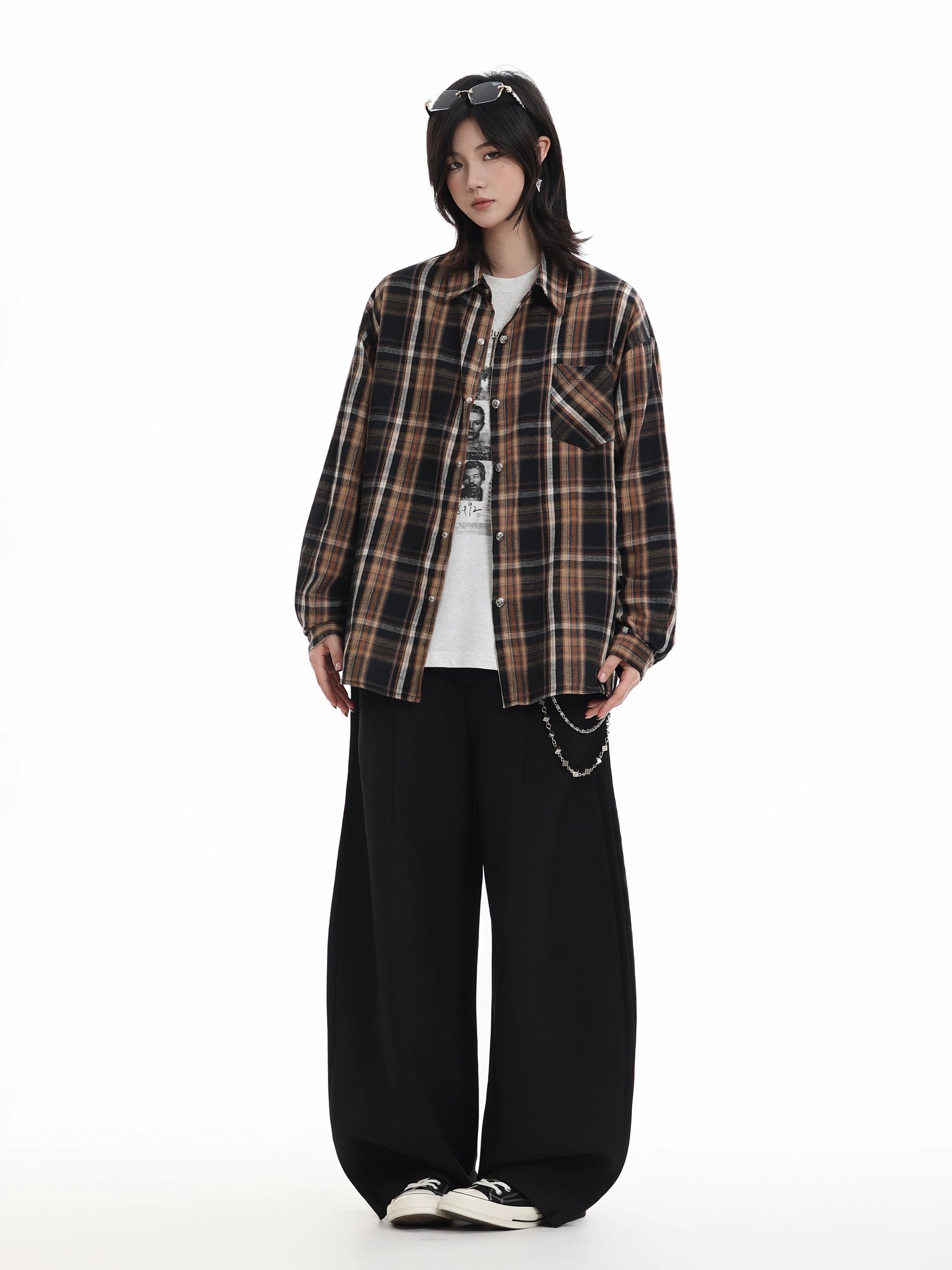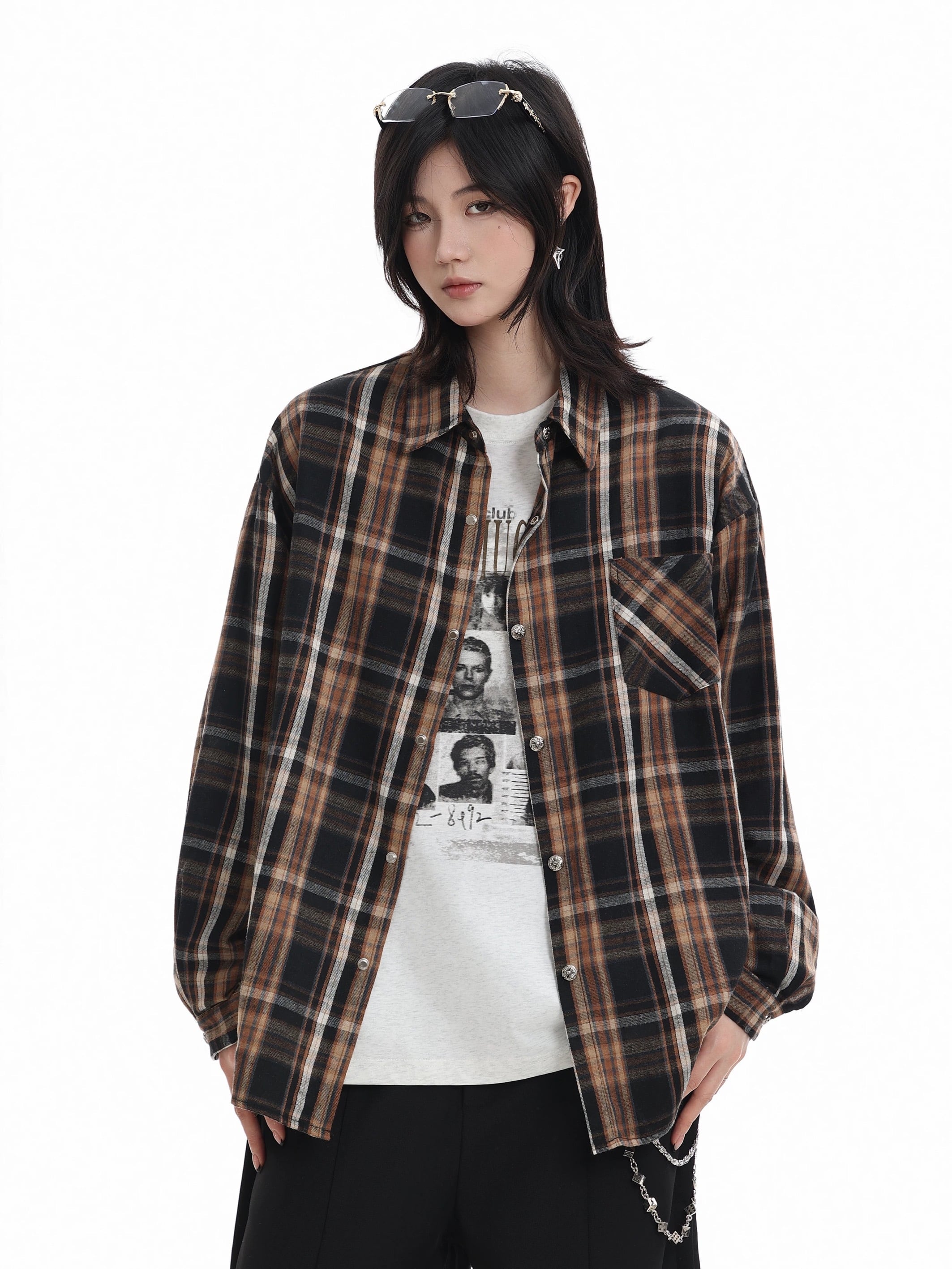 秋っぽい落ち着いカラーをベースにしたチェック柄のオーバーシャツ。