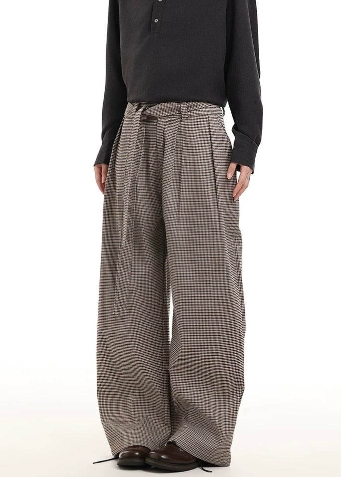チェックワイドウエストタイパンツ / Check Wide Waist Tie Pants