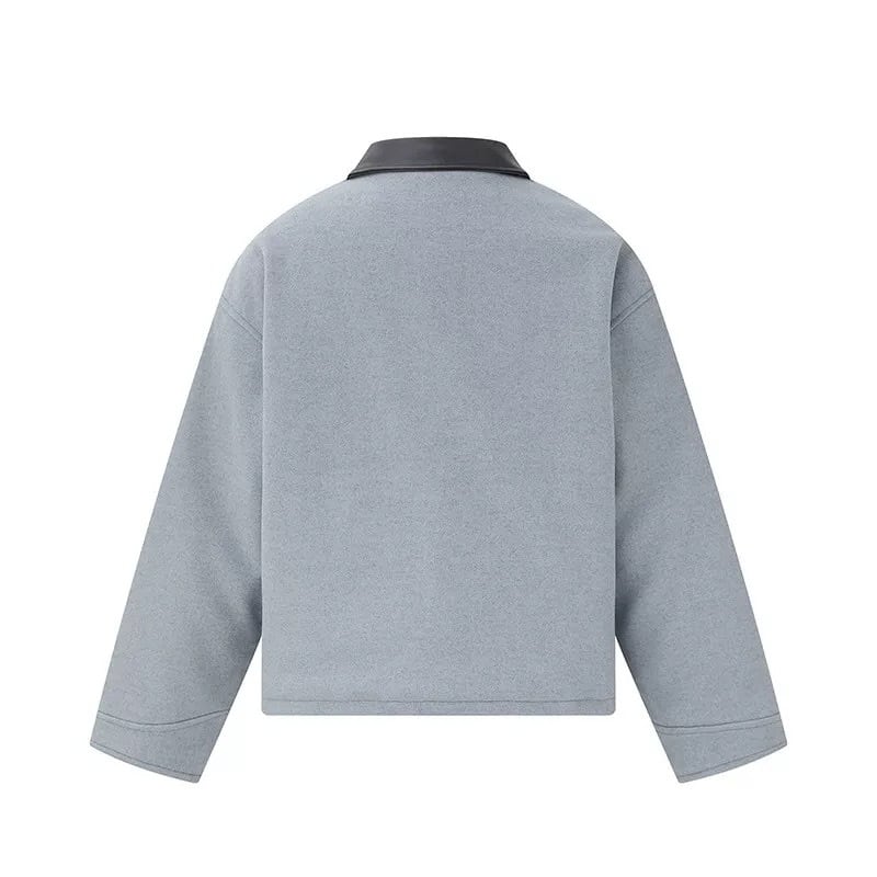 柔らかく厚みのある生地に、レザー調の襟を合わせて程よくストリート感をプラス。