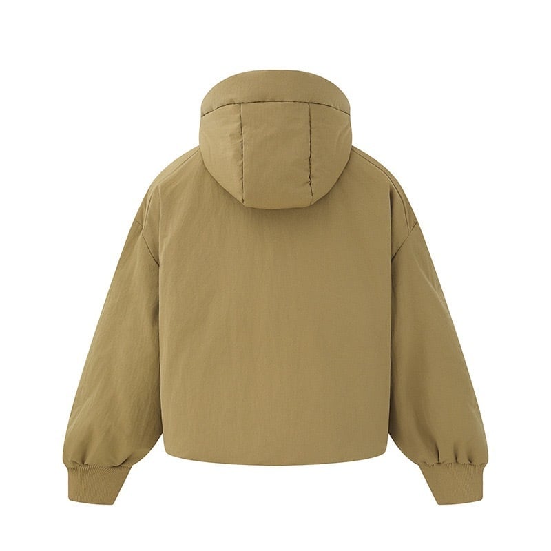首元まで包み込むフード構造と、無駄を削ぎ落としたミニマルなデザインで、都会的な抜け感を演出します。