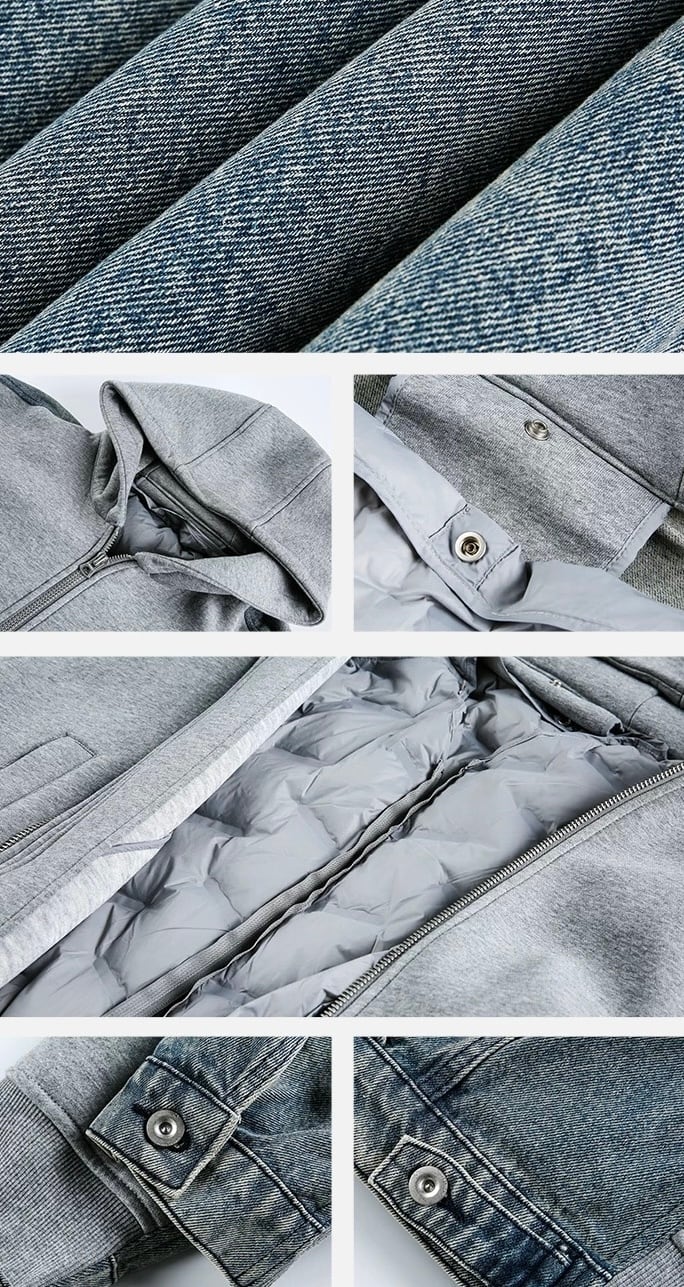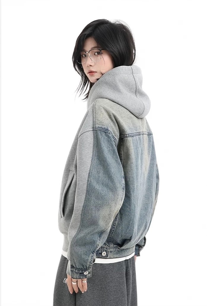 デニム×スウェットの異素材コンビが映えるフーディジャケット。