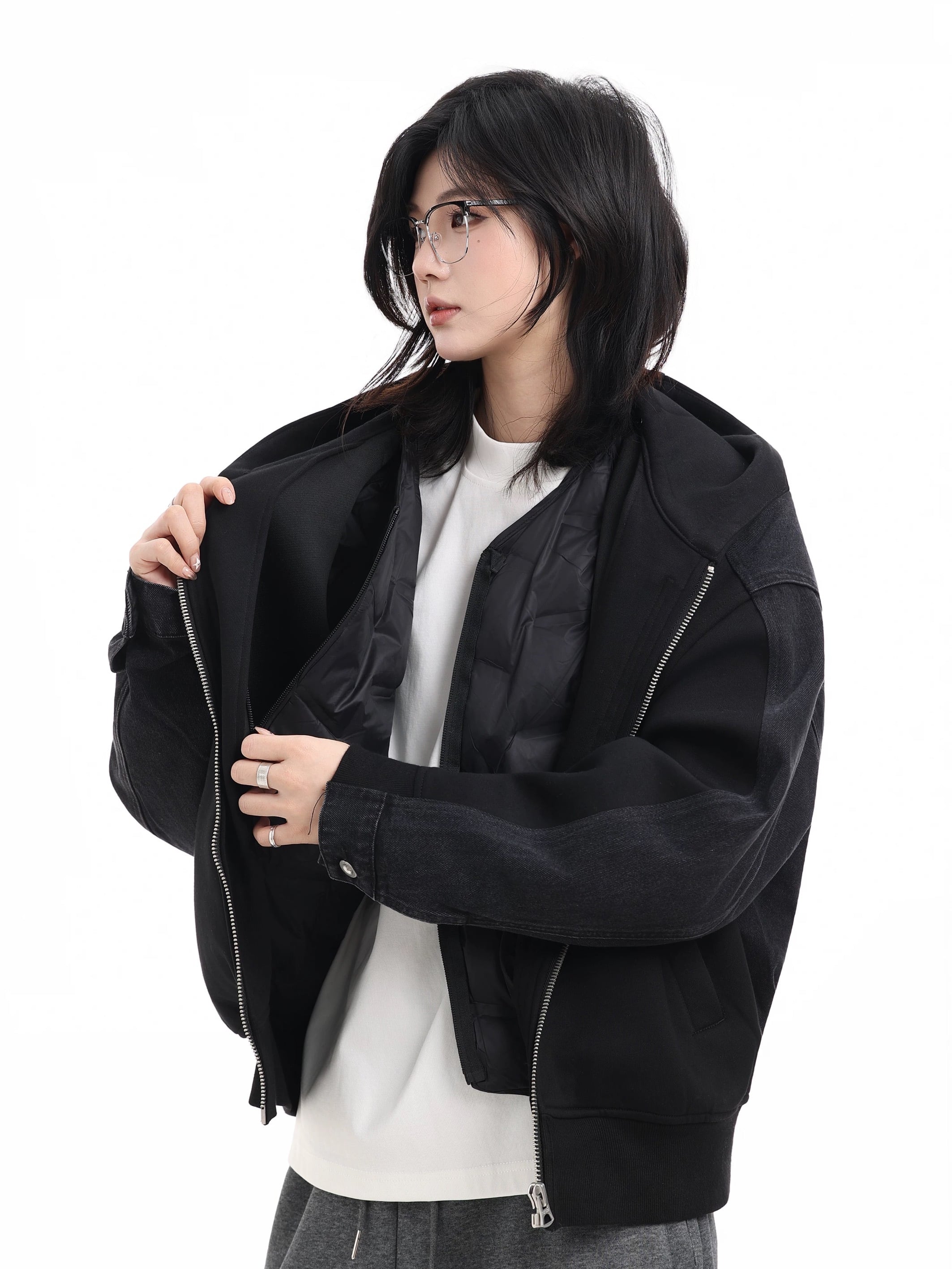 レイヤードデニムフーディジャケット / LAYERED DENIM HOODIE JACKET
