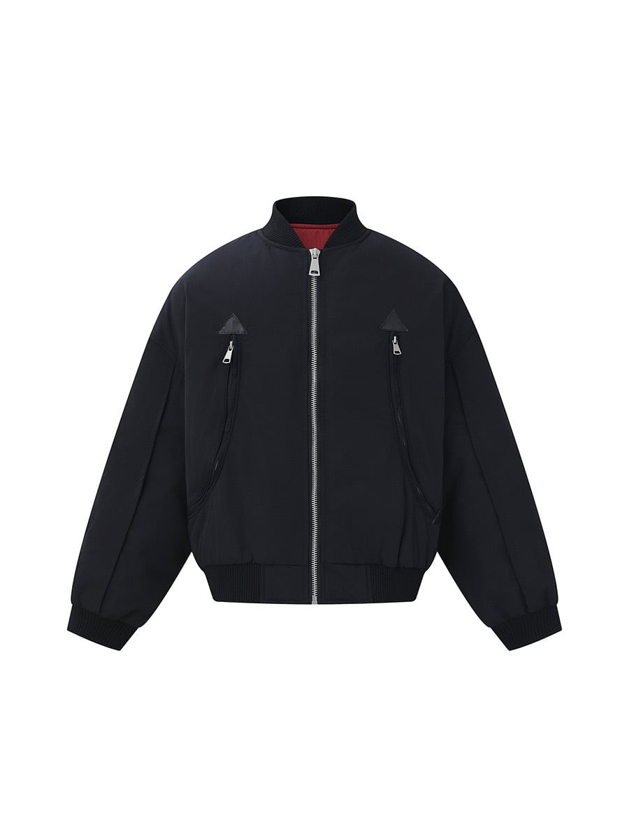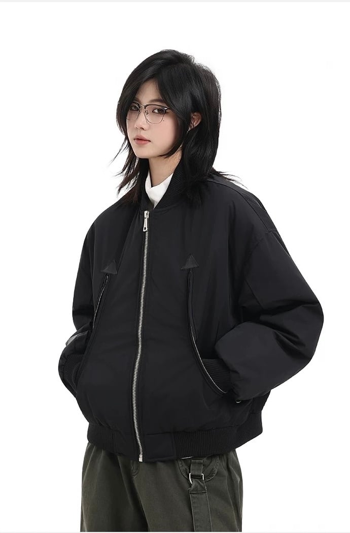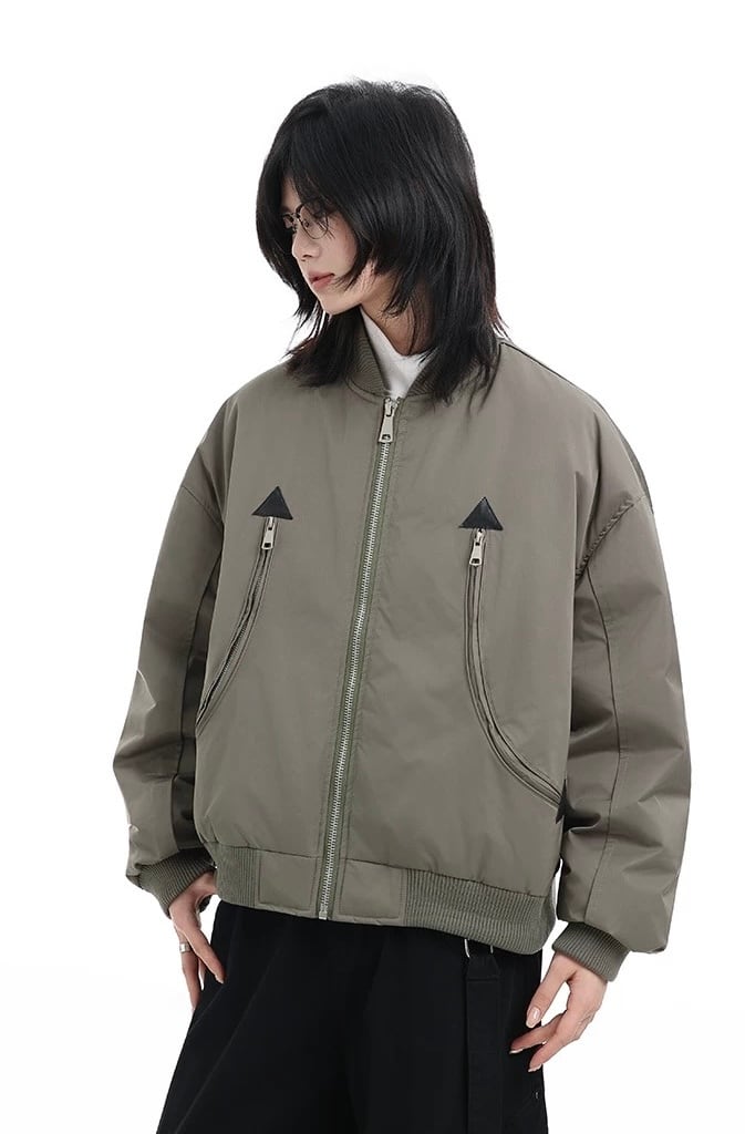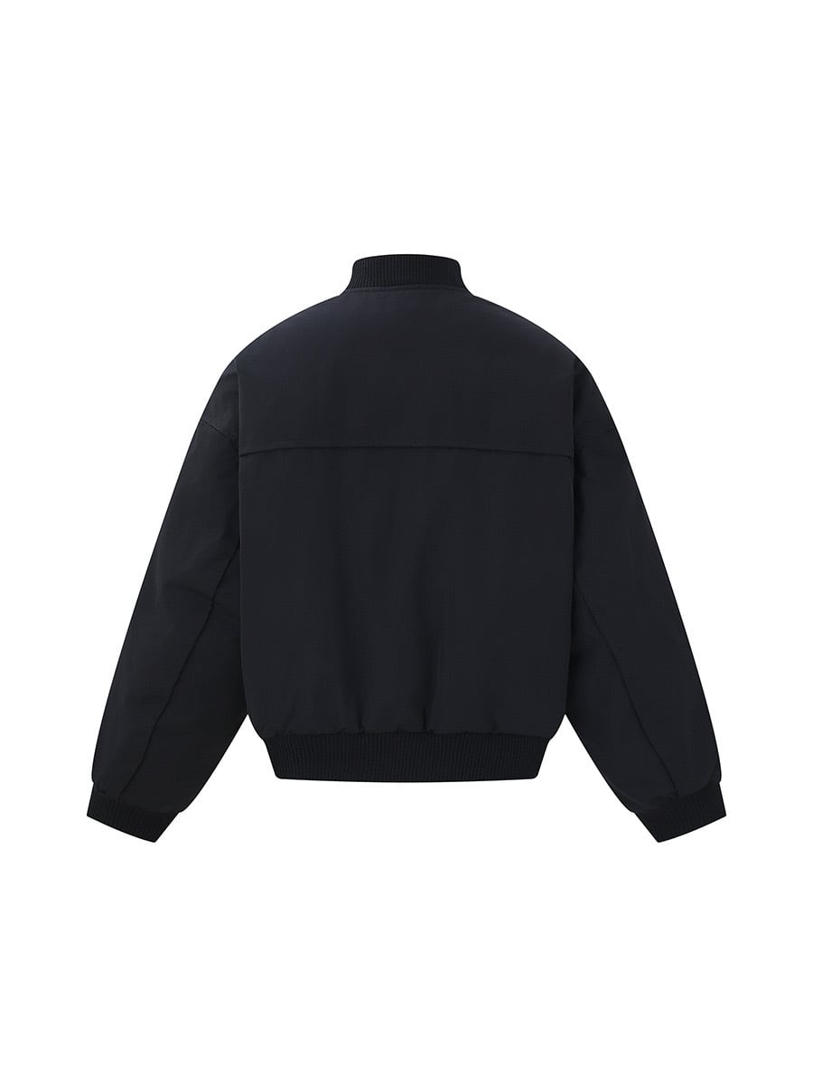 カーブを描くジップラインが特徴の中綿ブルゾン。