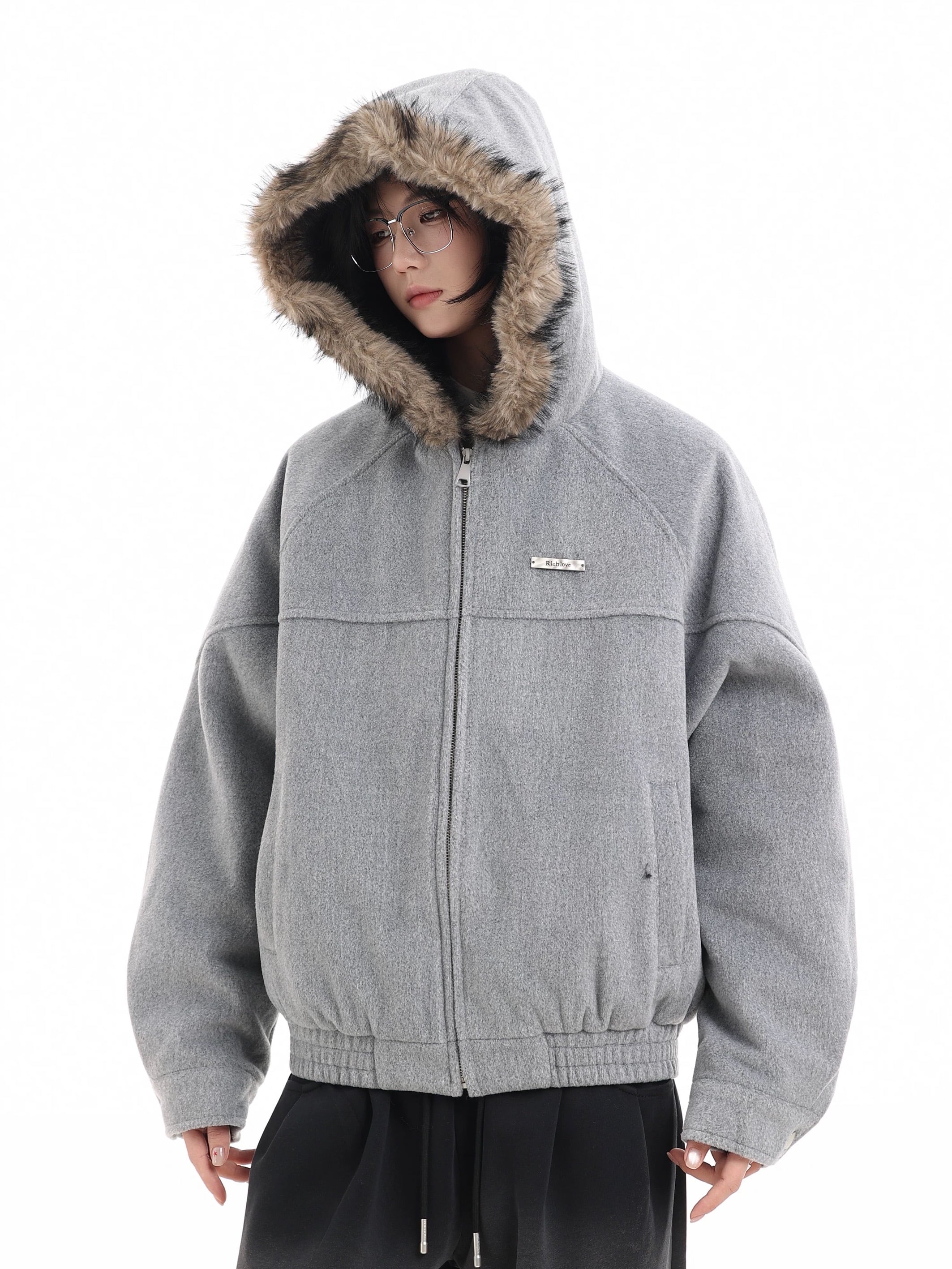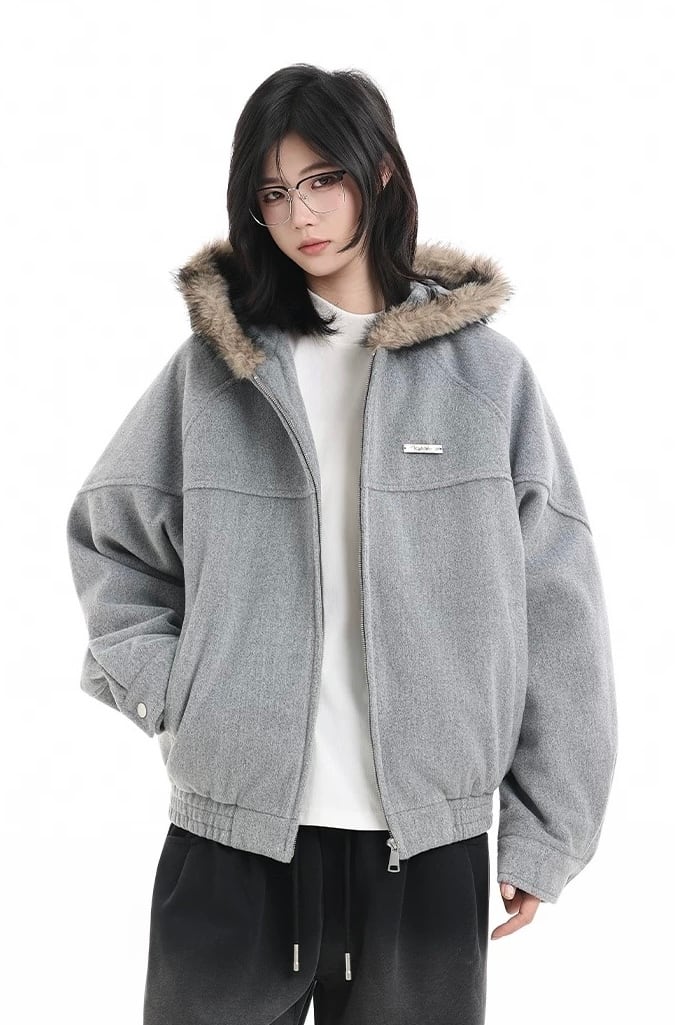ファーフードウールジャケット / Fake Fur Hood Wool Jacket