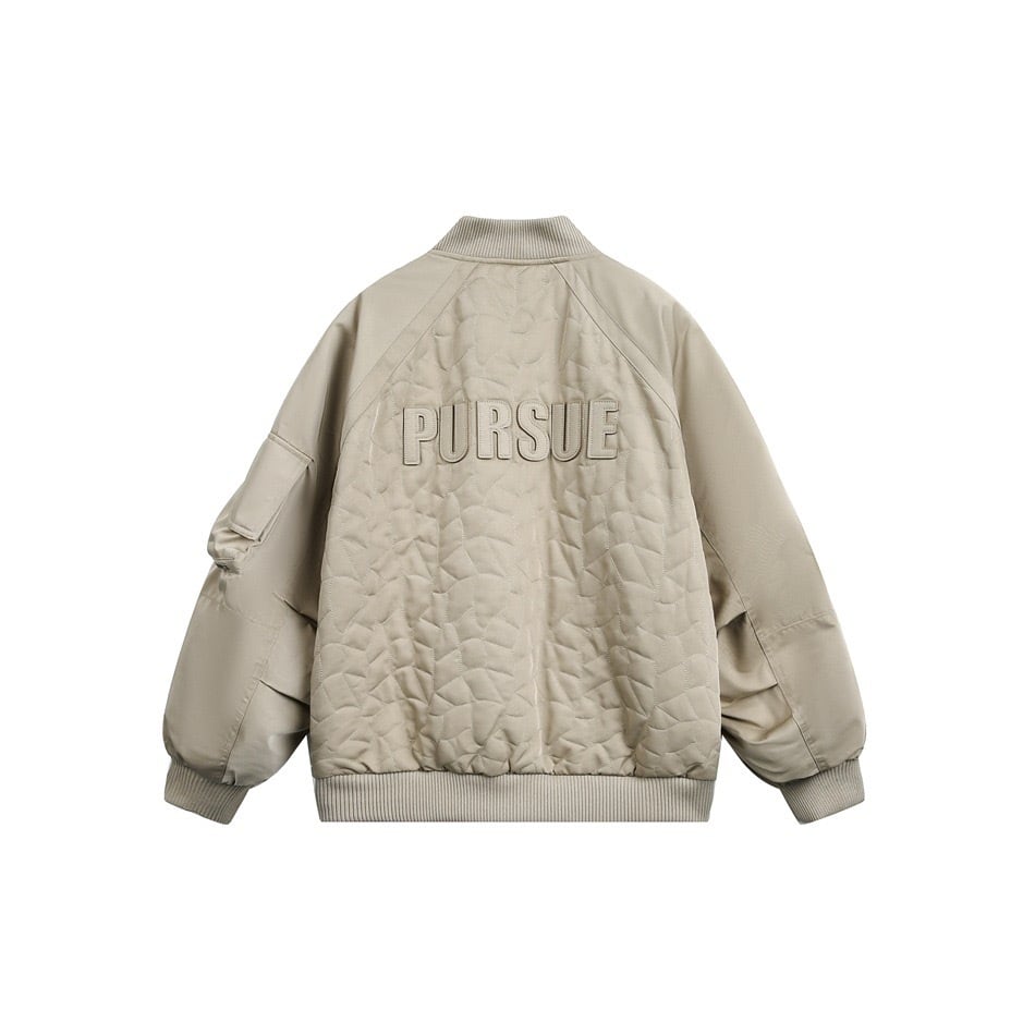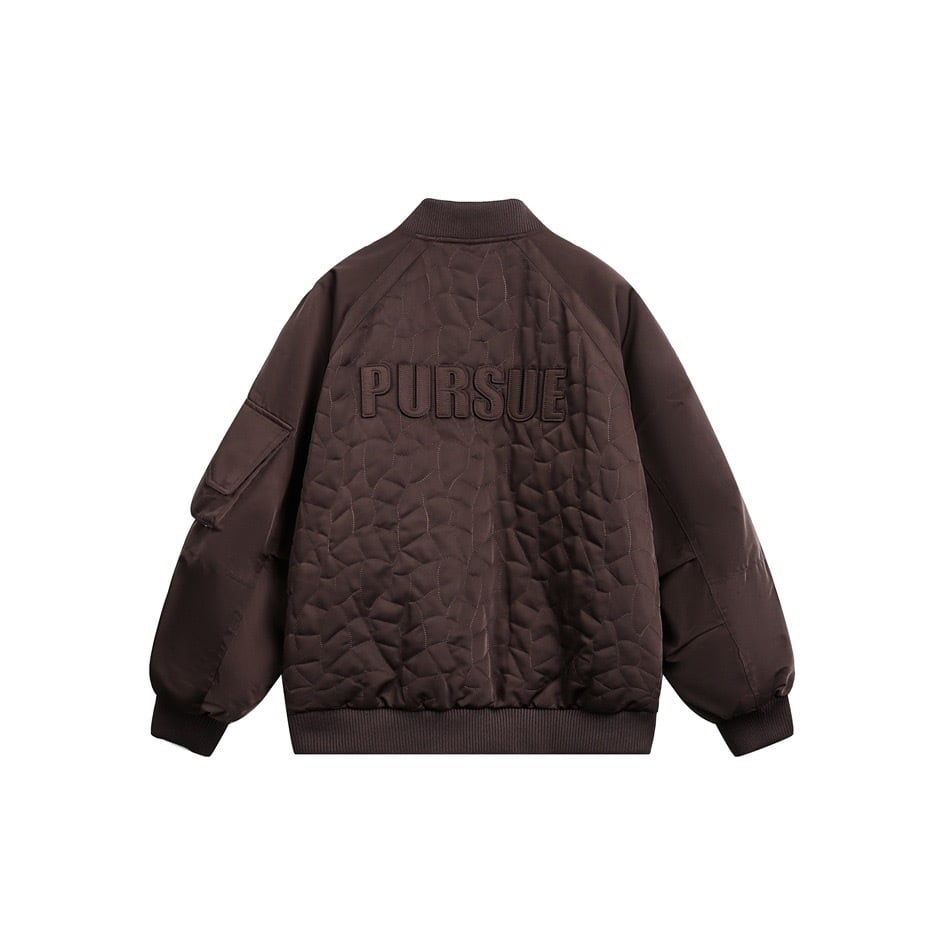 背面には立体的な「PURSUЕ」ロゴと独特のキルティングステッチを施し、360°どこから見ても存在感のある仕上がりに。