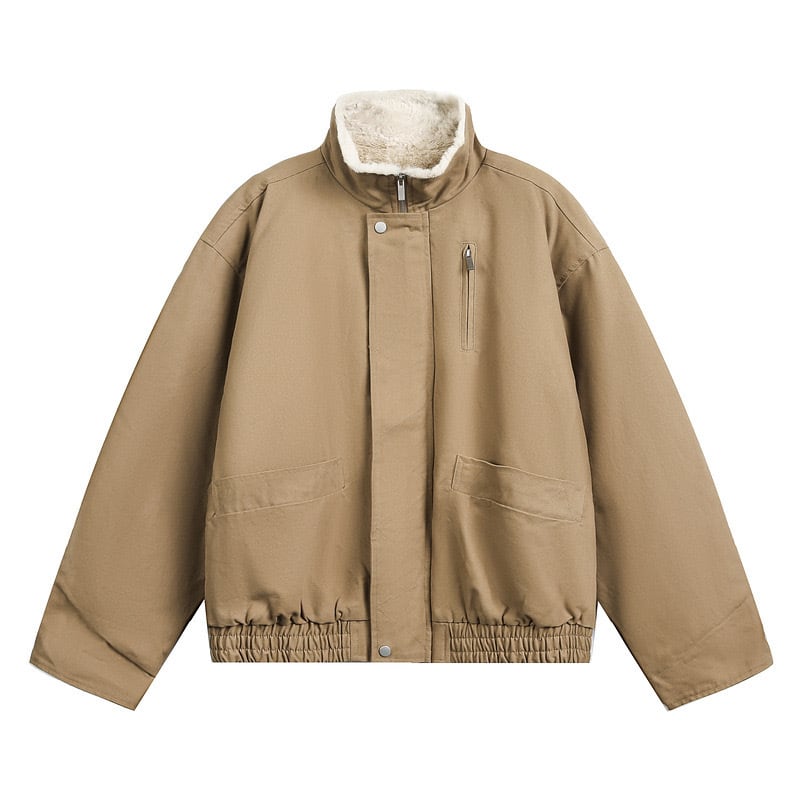 内側に暖かいボアをあしらった、ストリートシーンに馴染むジャケット。