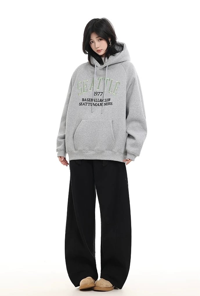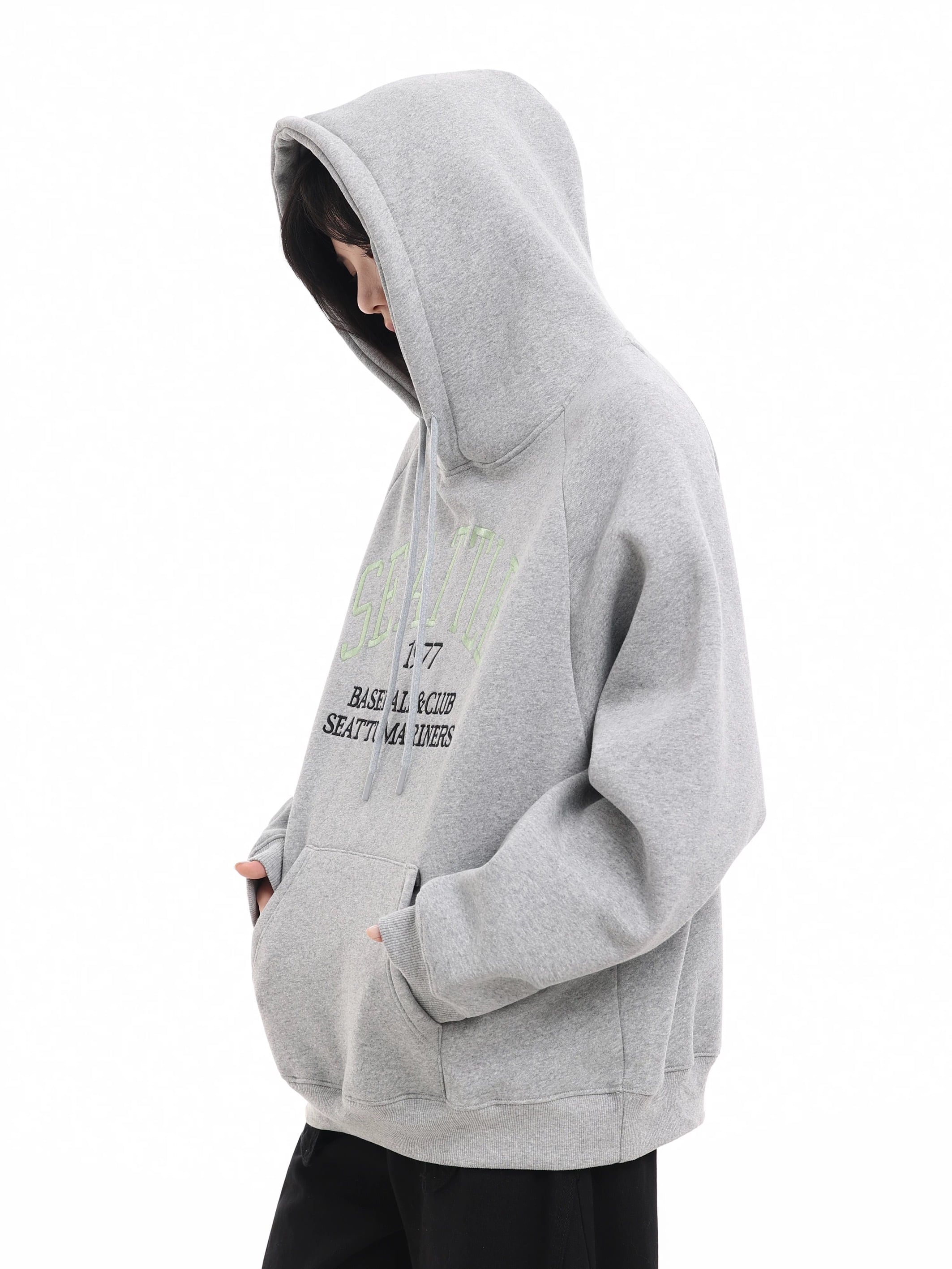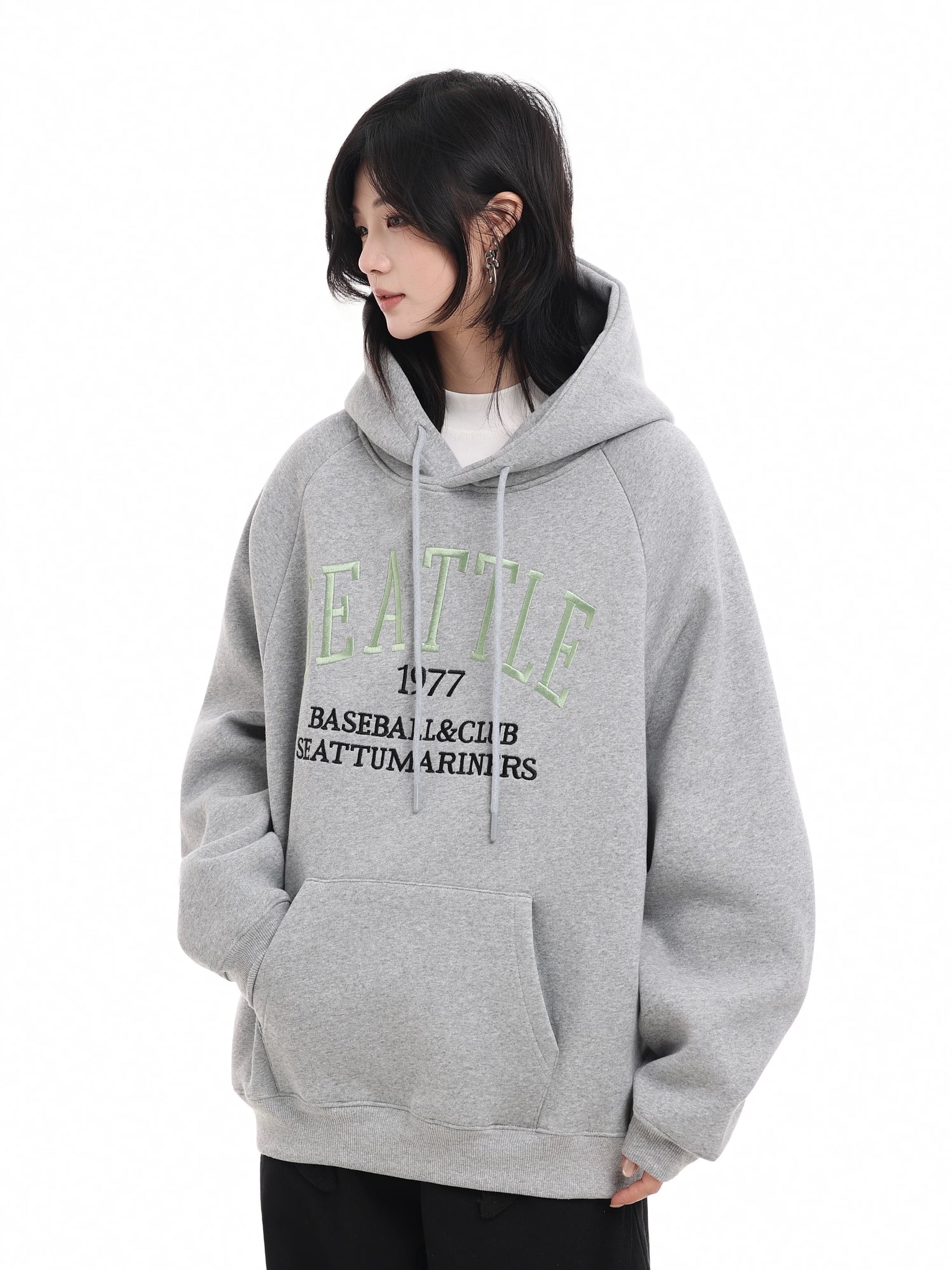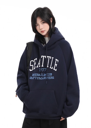 胸元の「SEATTLE」ロゴは存在感のあるチェーン刺繍で、カジュアルながらも上品なアクセントに。