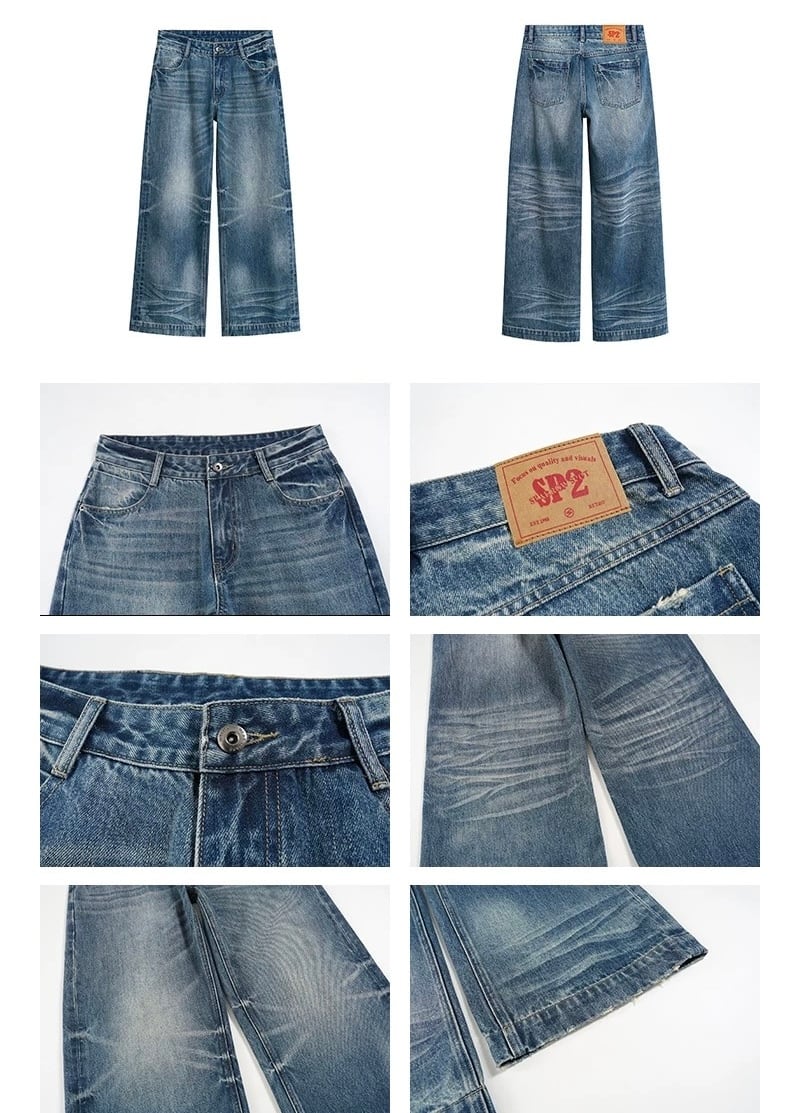 深みのある色落ちと、自然なヒゲ加工が魅力のワイドデニム。