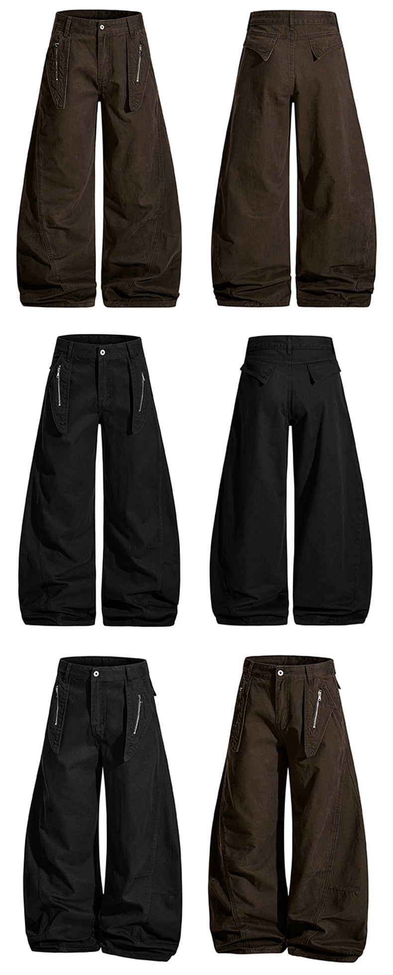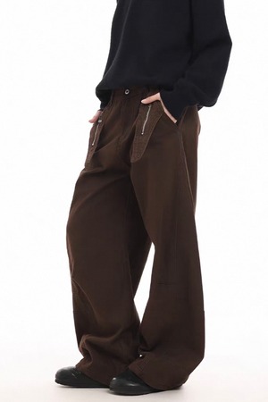 フロントのジップ付きアシンメトリーポケットが機能性とデザイン性を両立し、トップスを選ばずストリート感のあるスタイルを完成させます。