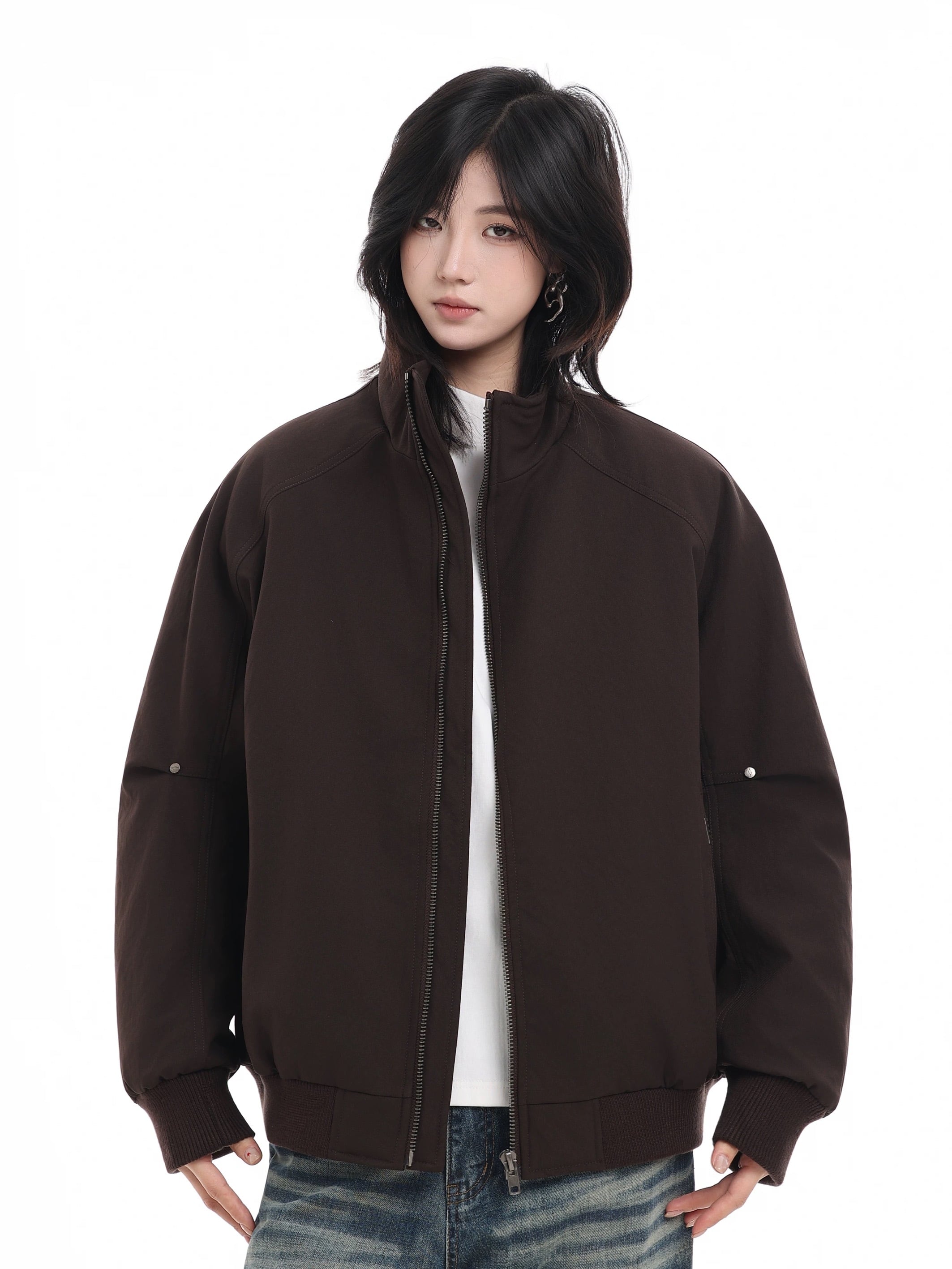 無駄のないミニマルなデザインに、ゆったりとしたボンバーシルエットを落とし込んだダウンジャケット。