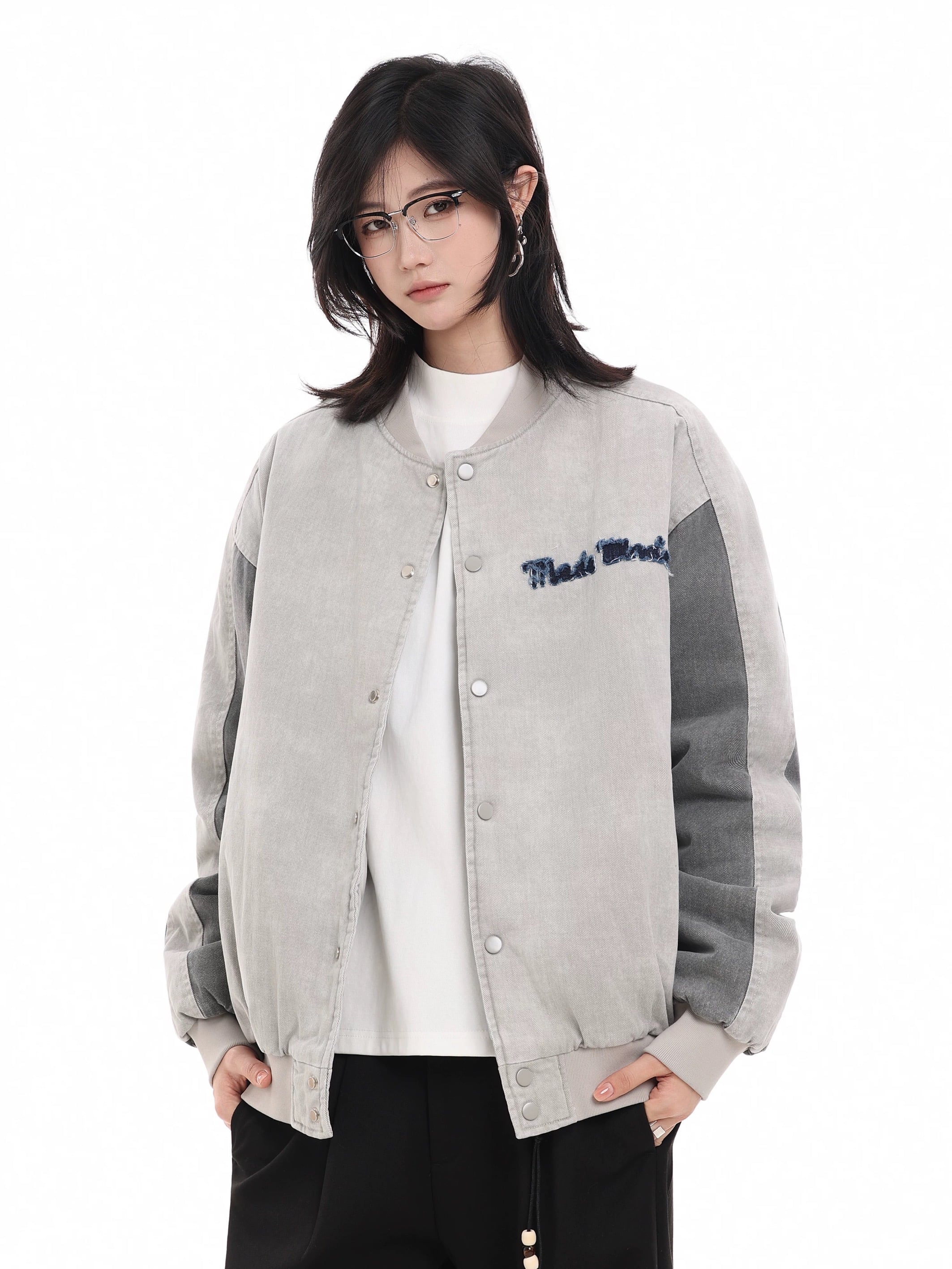 フェード感のある生地を組み合わせた、ヴィンテージライクなスタジャンジャケット。