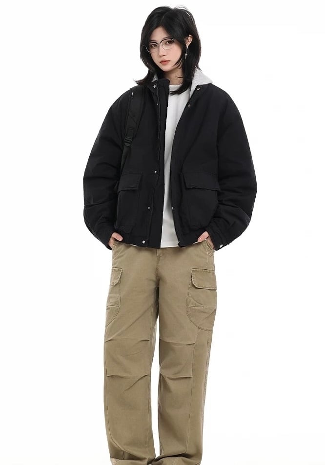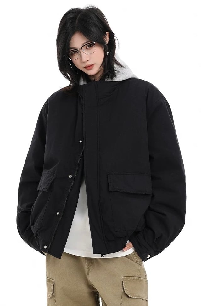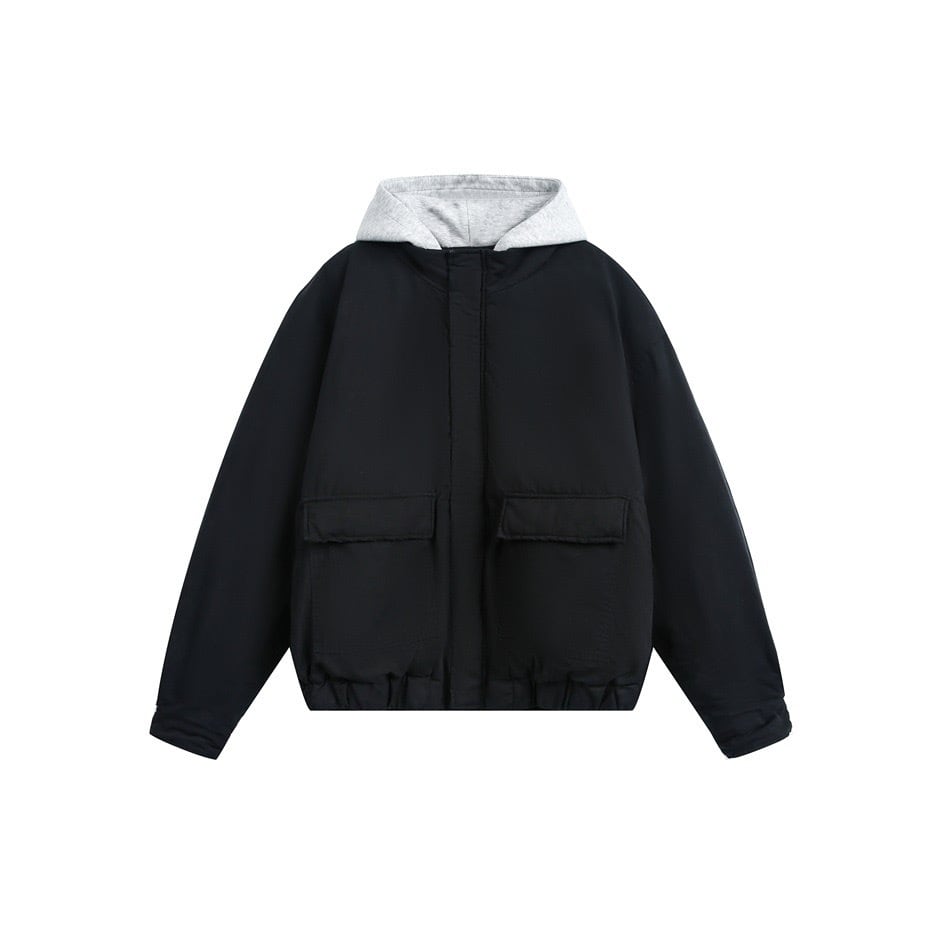フェイクツーピースフーデッドキルティングジャケット / Fake Two-Piece Hooded Quilted Jacket