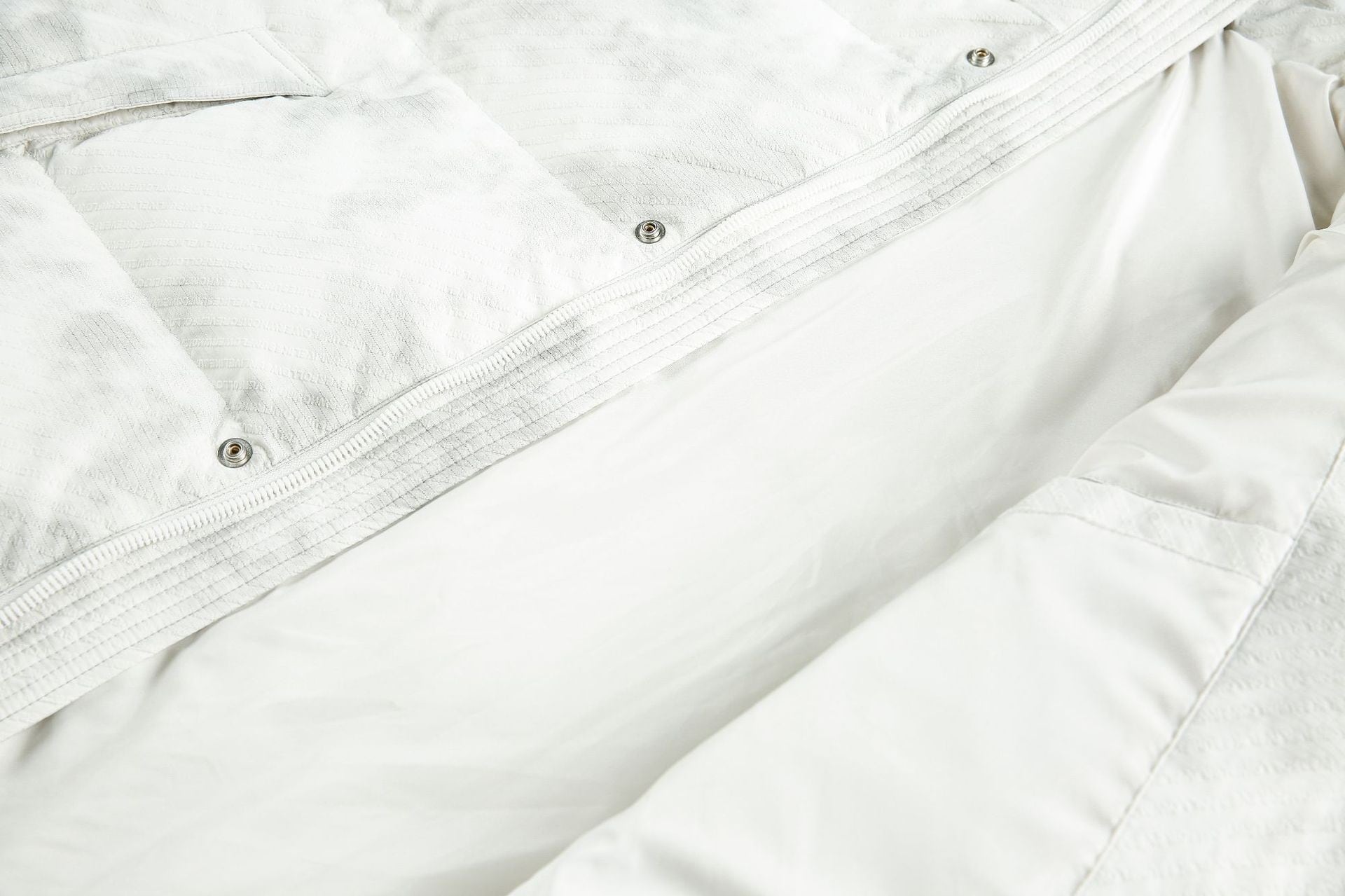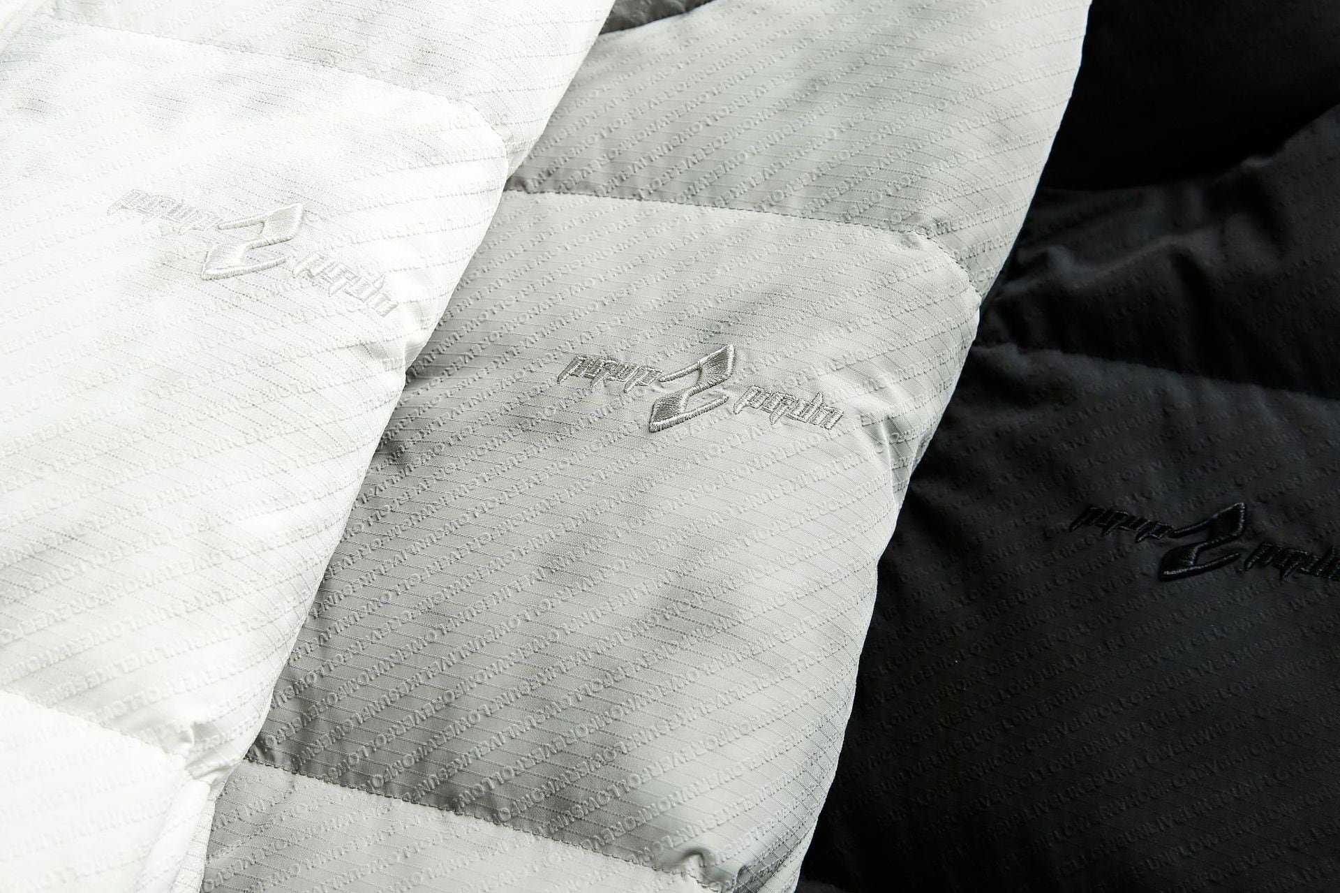 中綿にはホワイトダックダウン90%(126–157g)を採用し、軽量ながら高い保温性を確保。