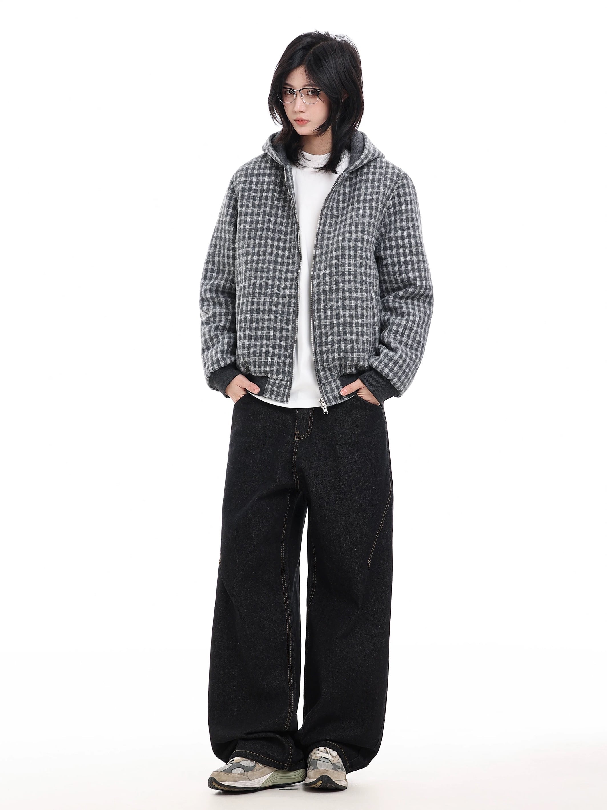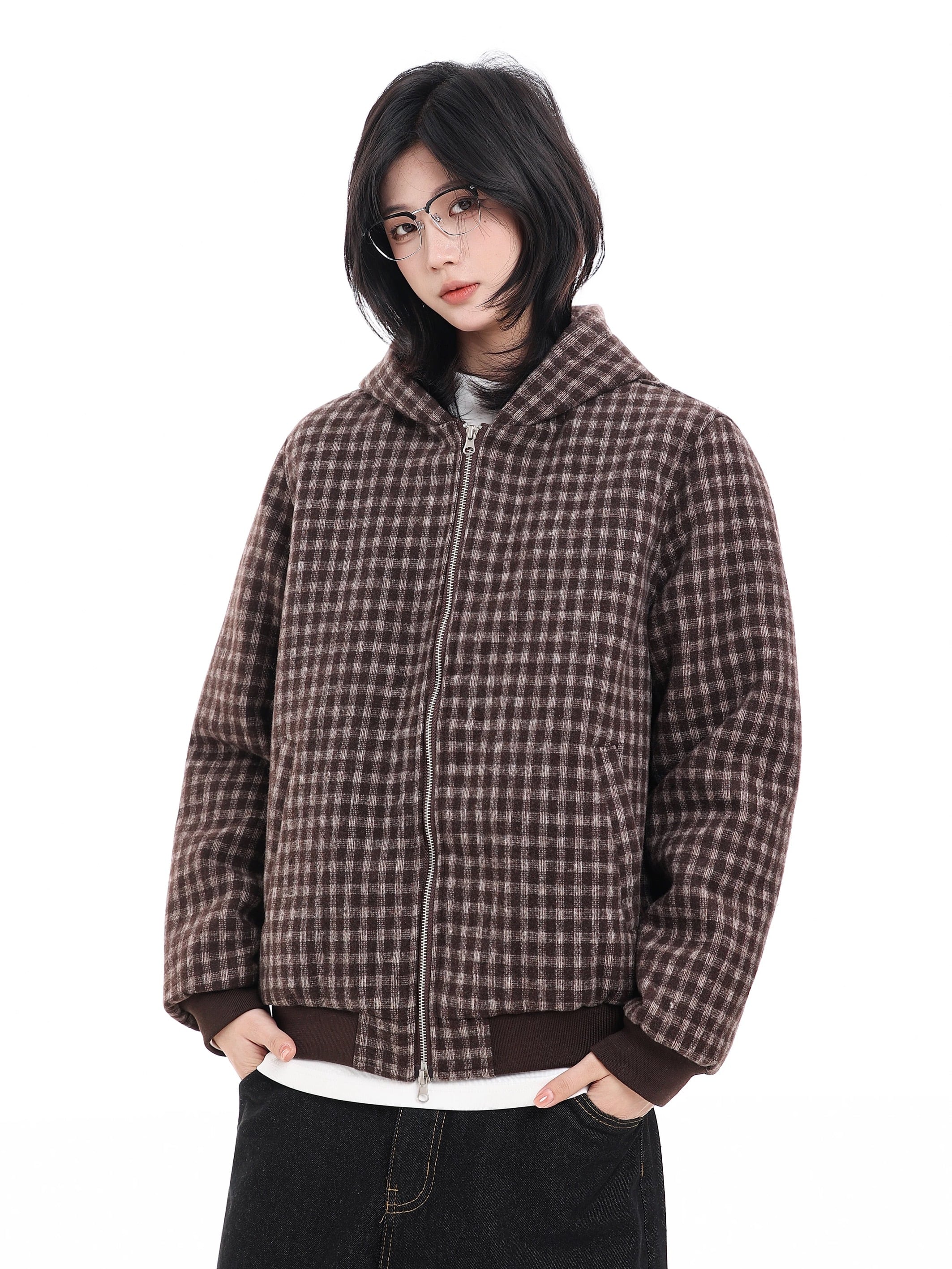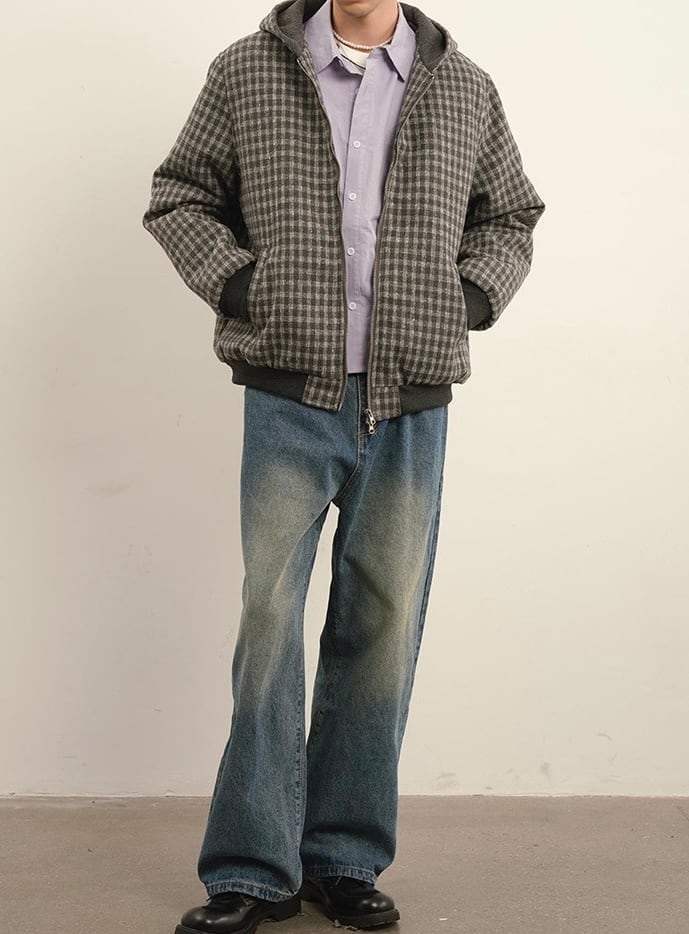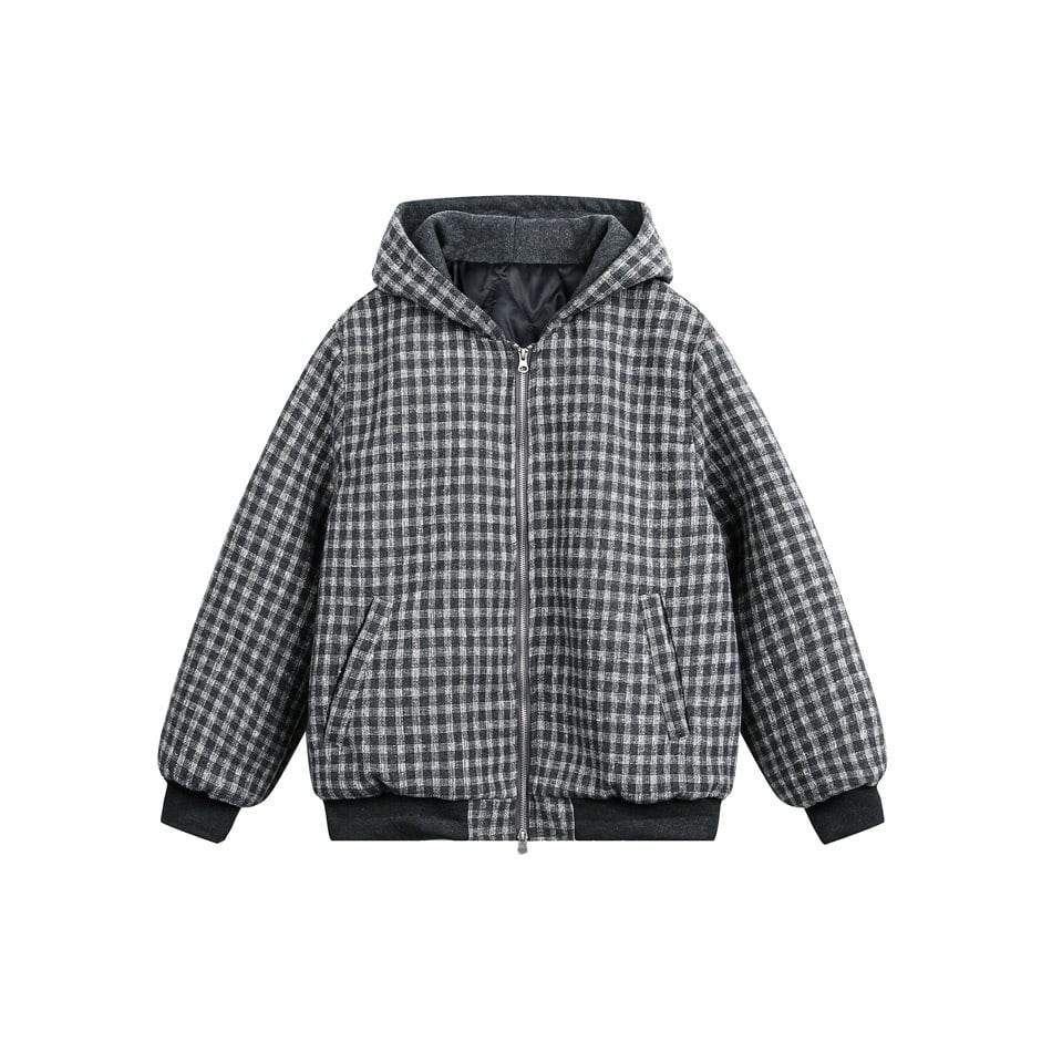 ウールタッチチェックフードブルゾン / Wool Touch Check Hood Blouson