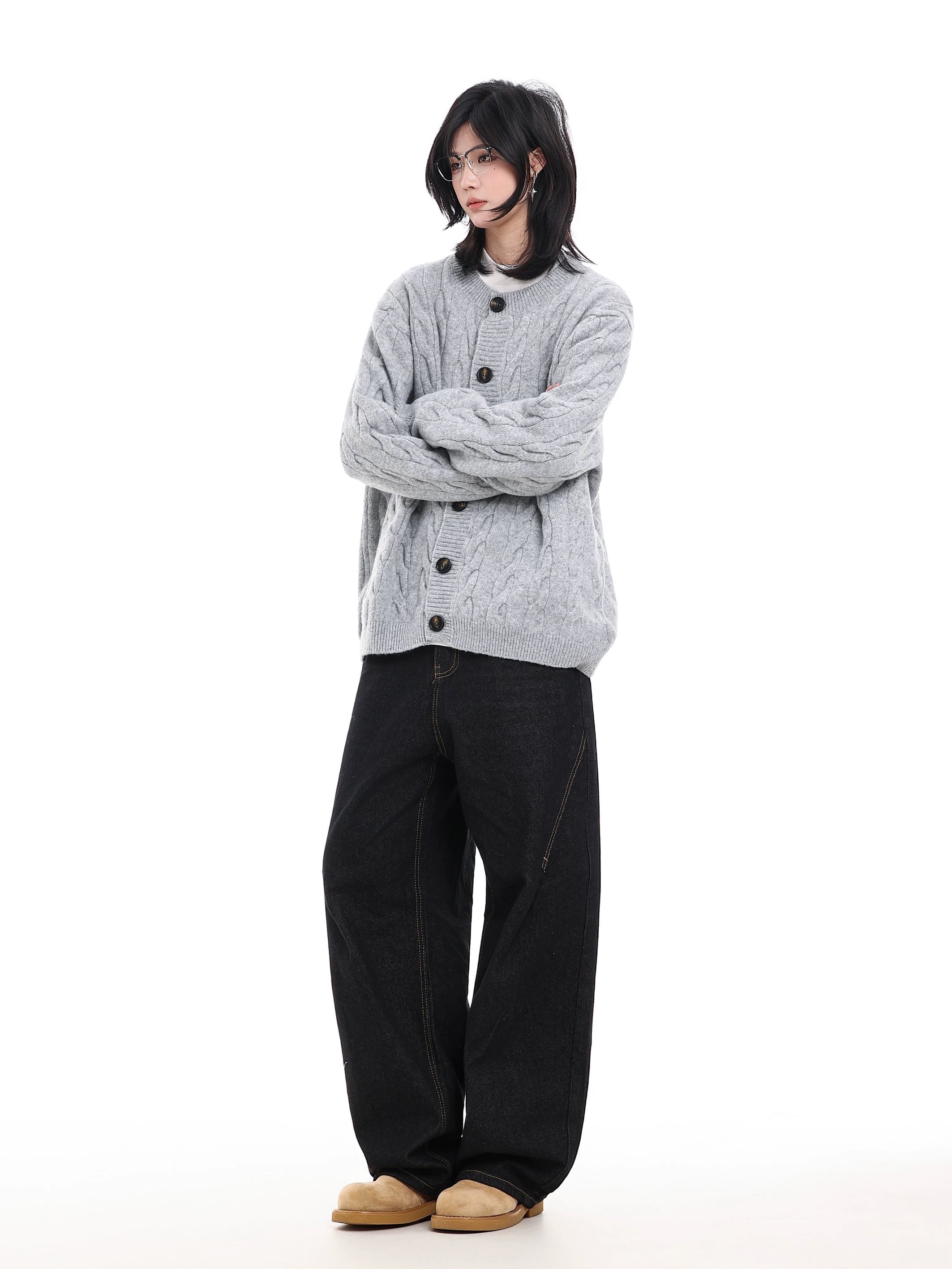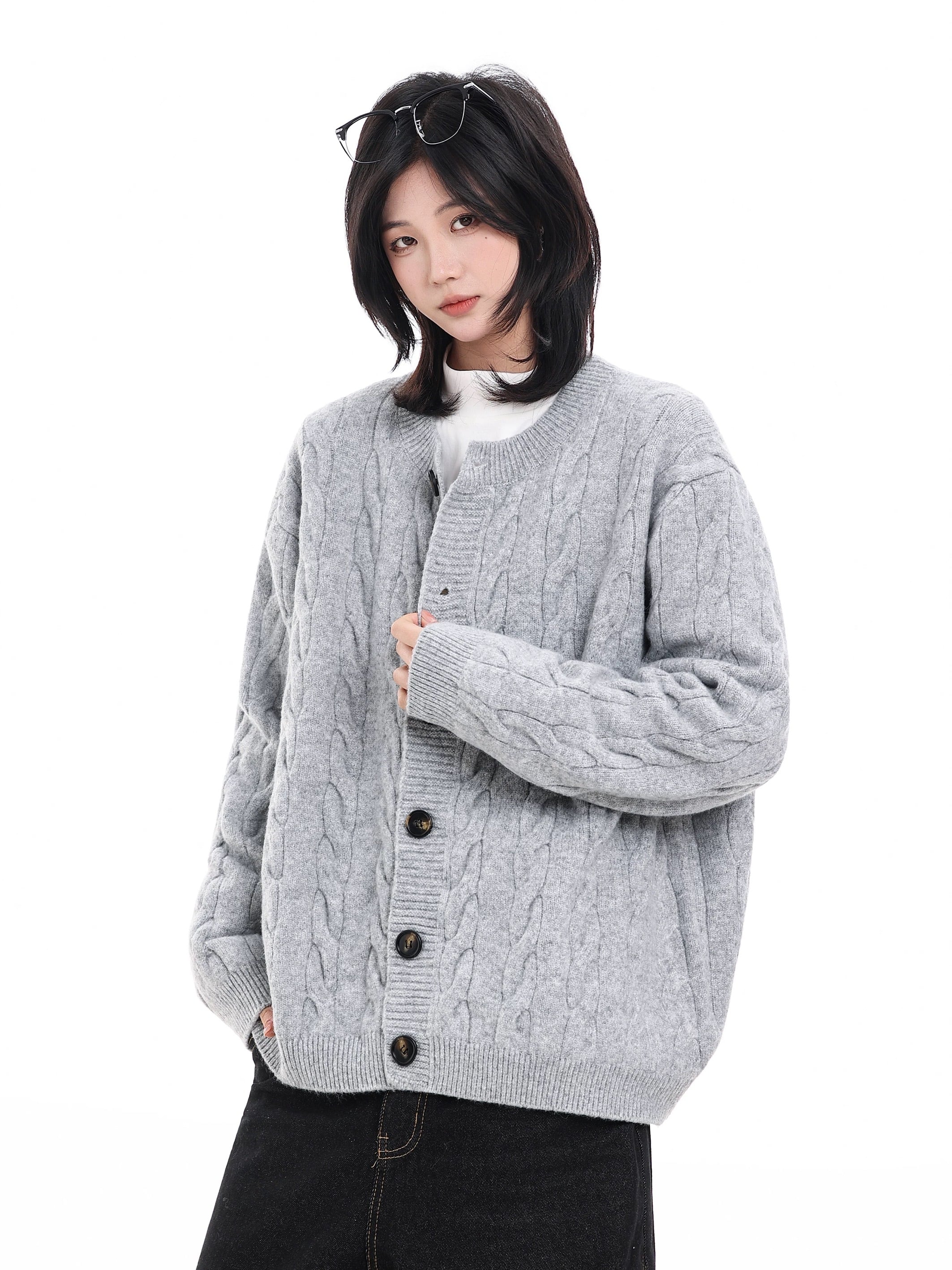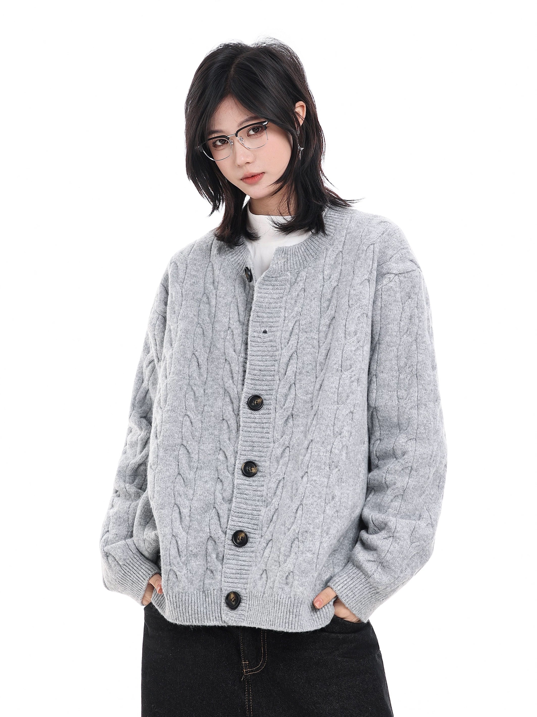 柔らかなタッチが魅力のケーブル編みニットを使用したオーバーサイズカーディガン。