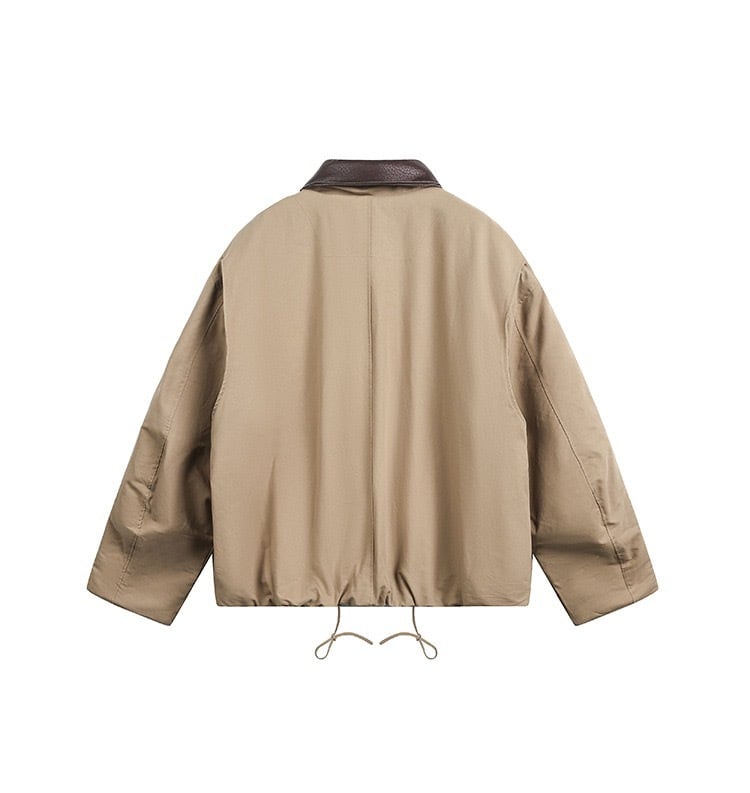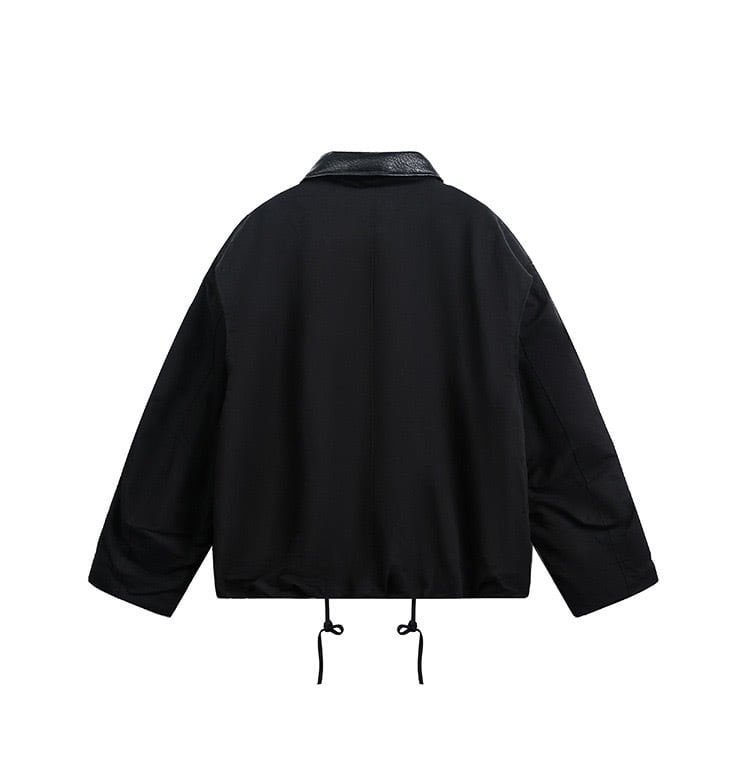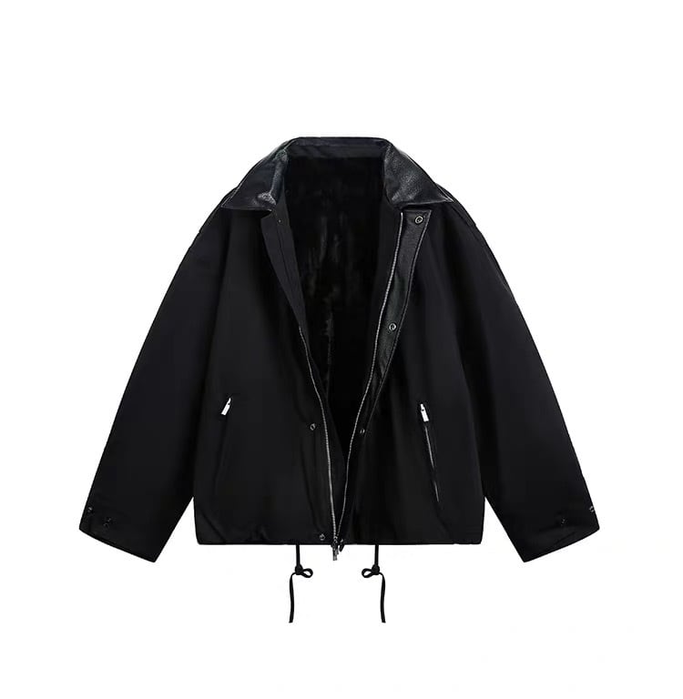 レザー調の切り替え襟がシンプルなデザインにアクセントをプラス。