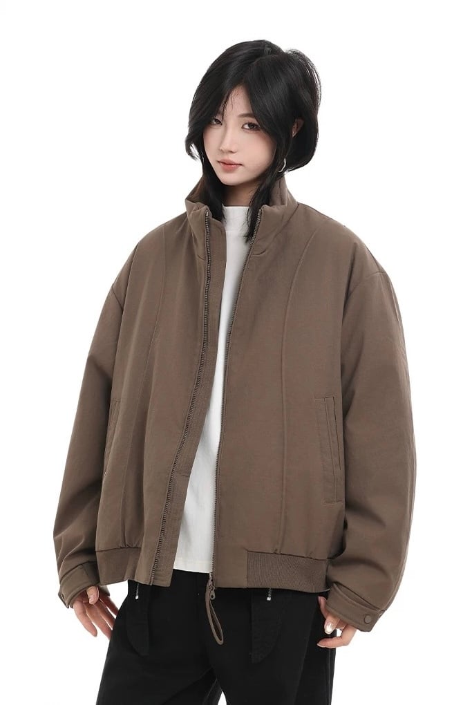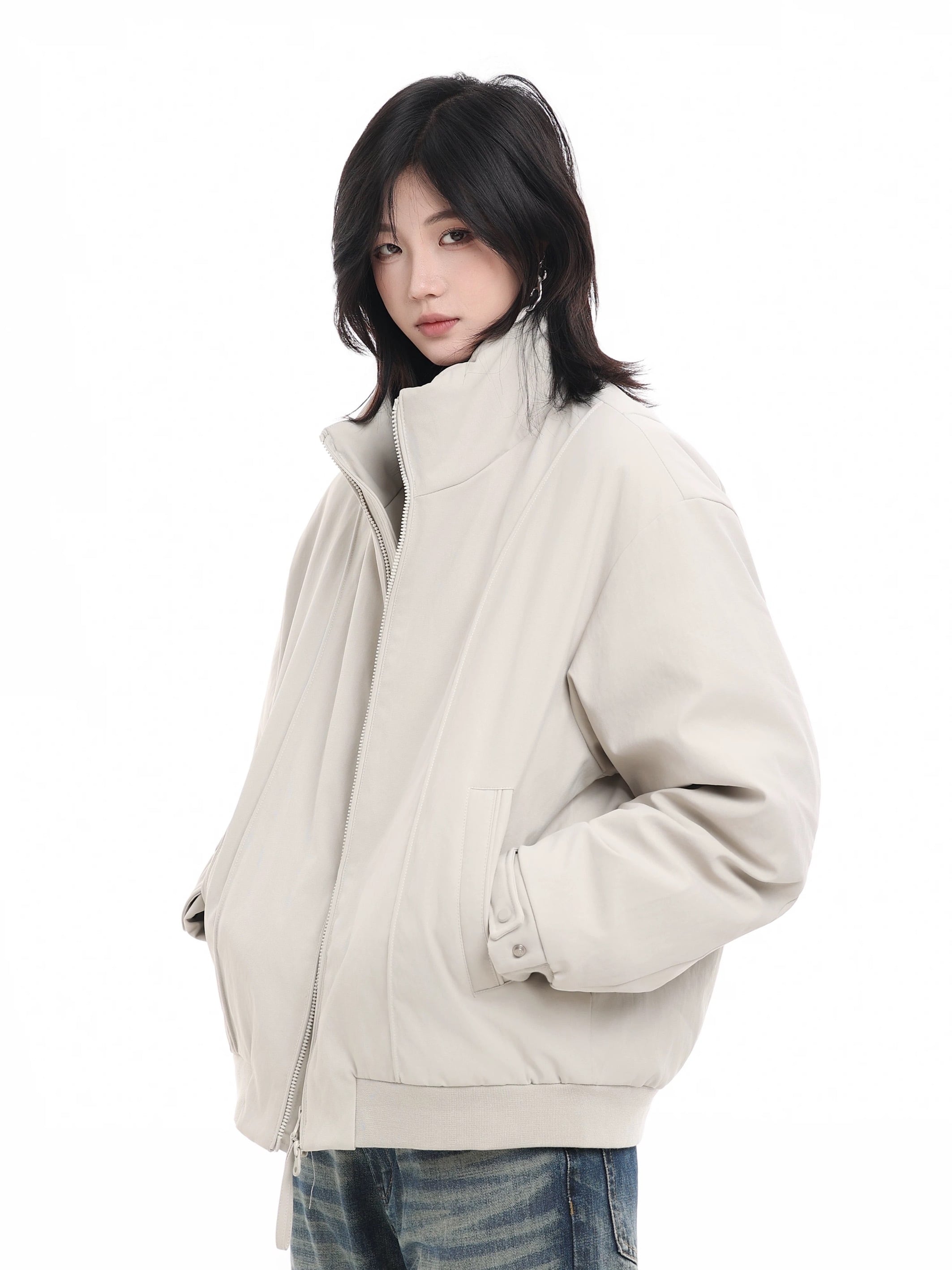 無駄をそぎ落としたミニマルデザインに、程よいボリューム感を持たせたハイネックショートブルゾン。