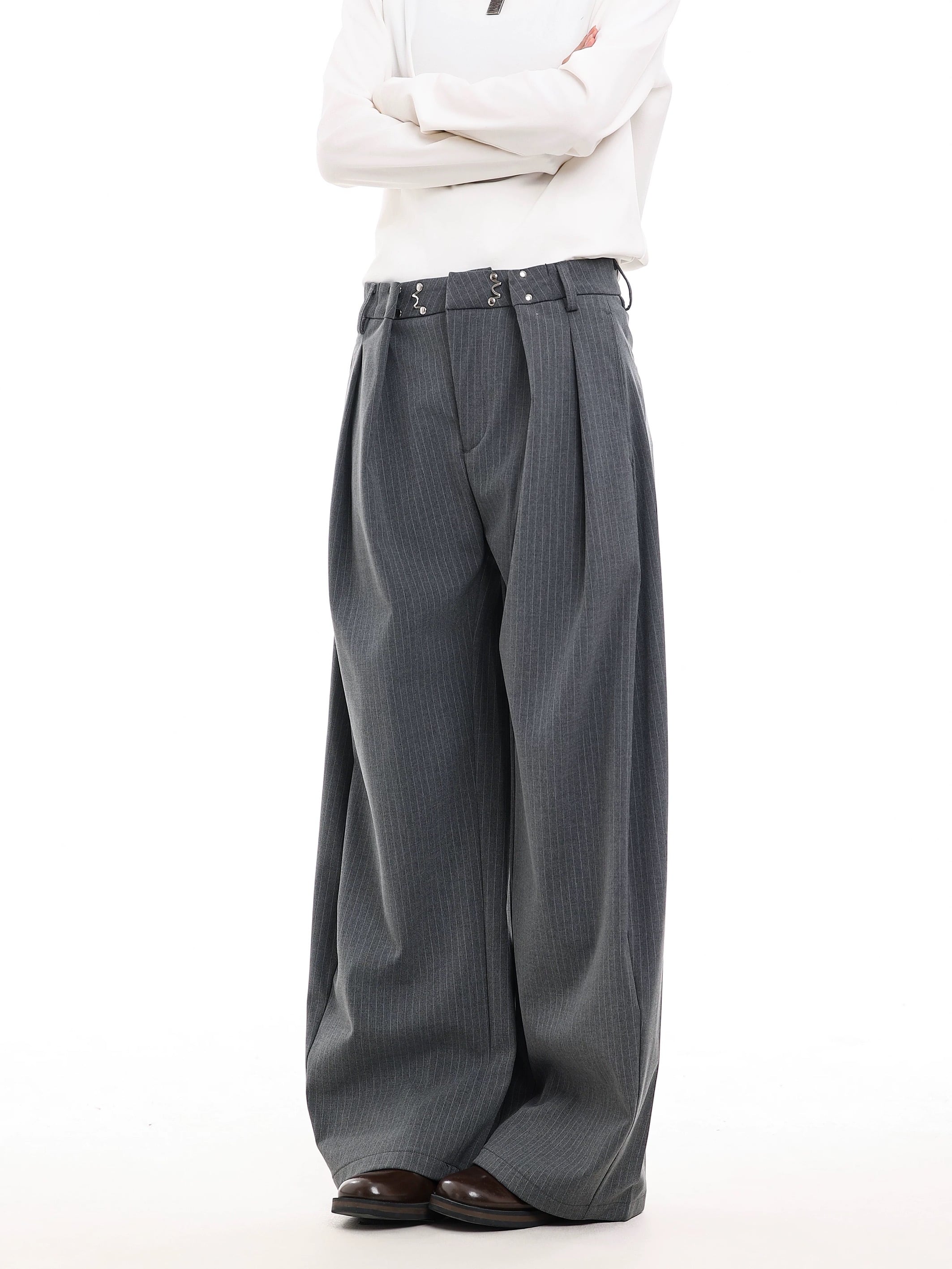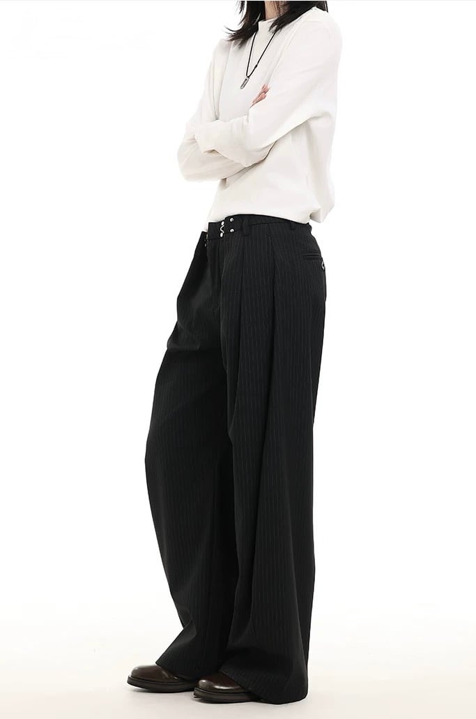 深いワンタックと極太ワイドシルエットが存在感を放つ、ピンストライプ柄のトラウザー。