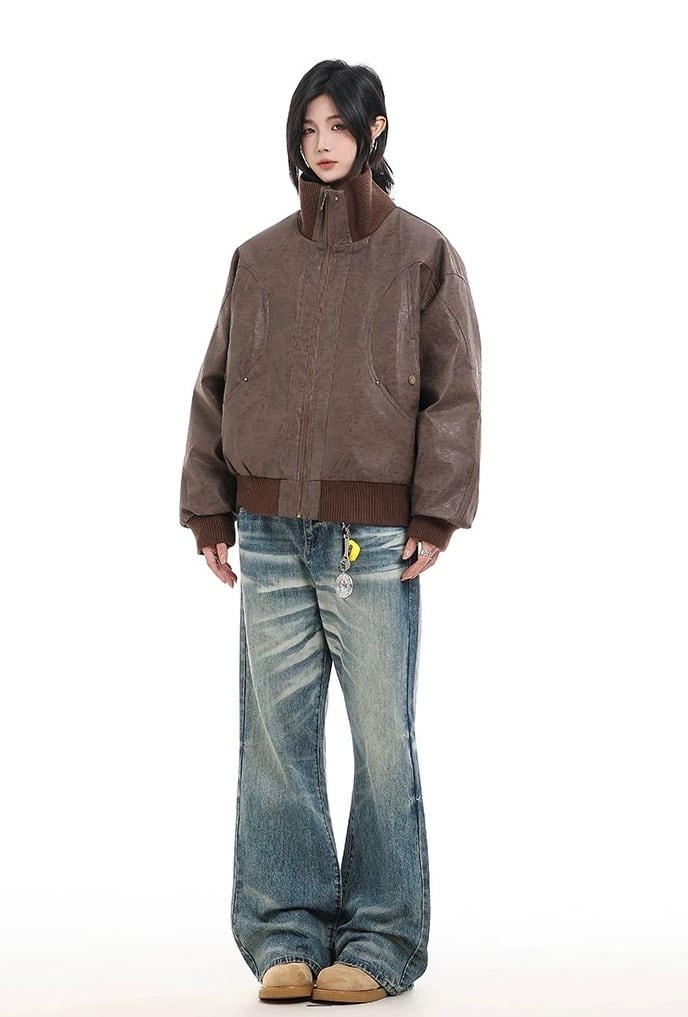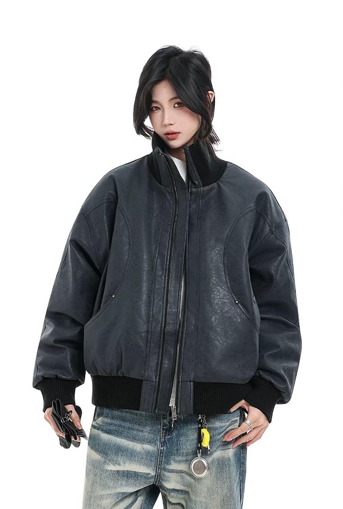 PUレザーダウンジャケット / PU Leather Down Jacket