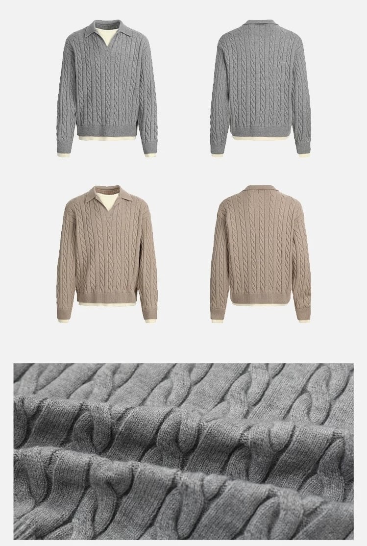 ケーブルカラーフェイクレイヤードニット / Cable Collar Fake Layered Knit