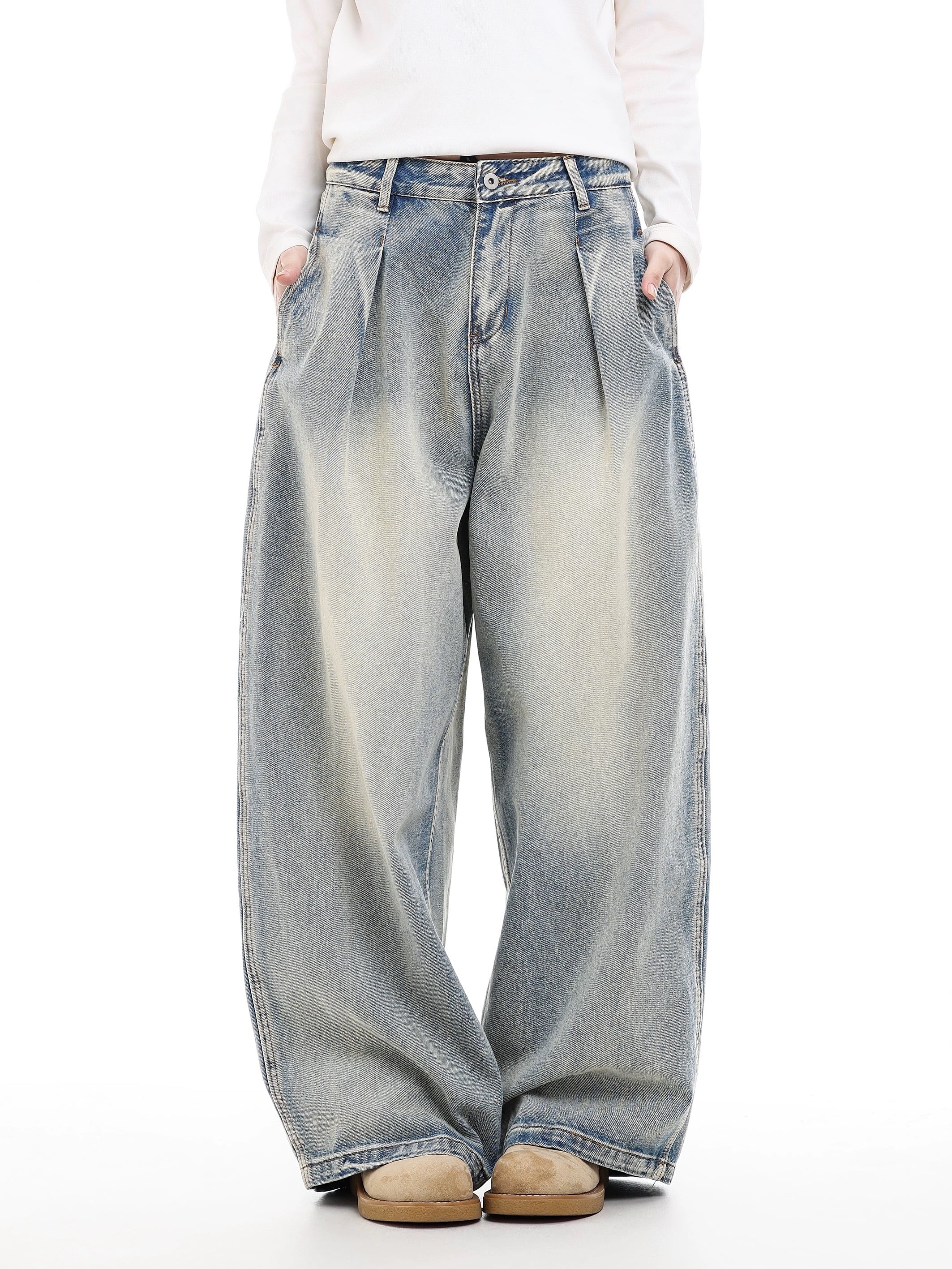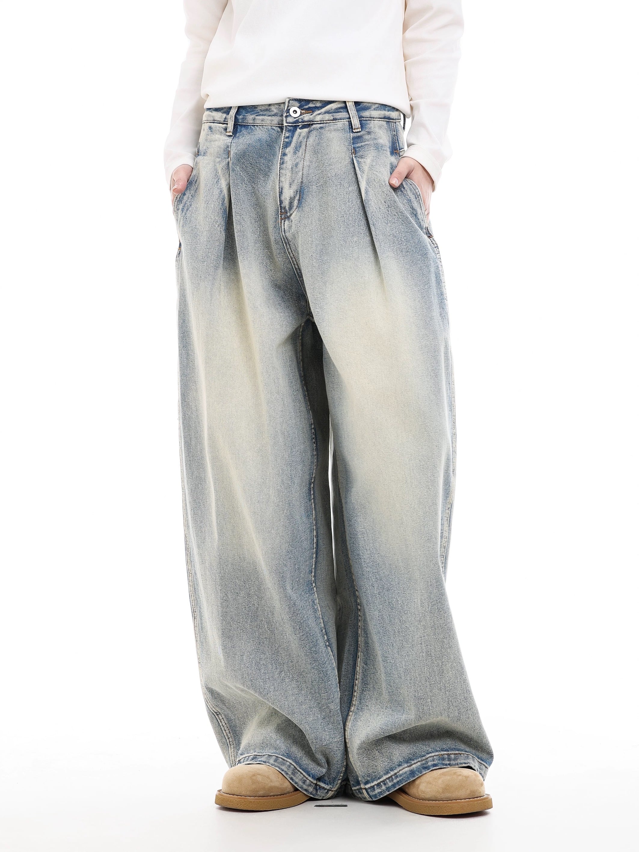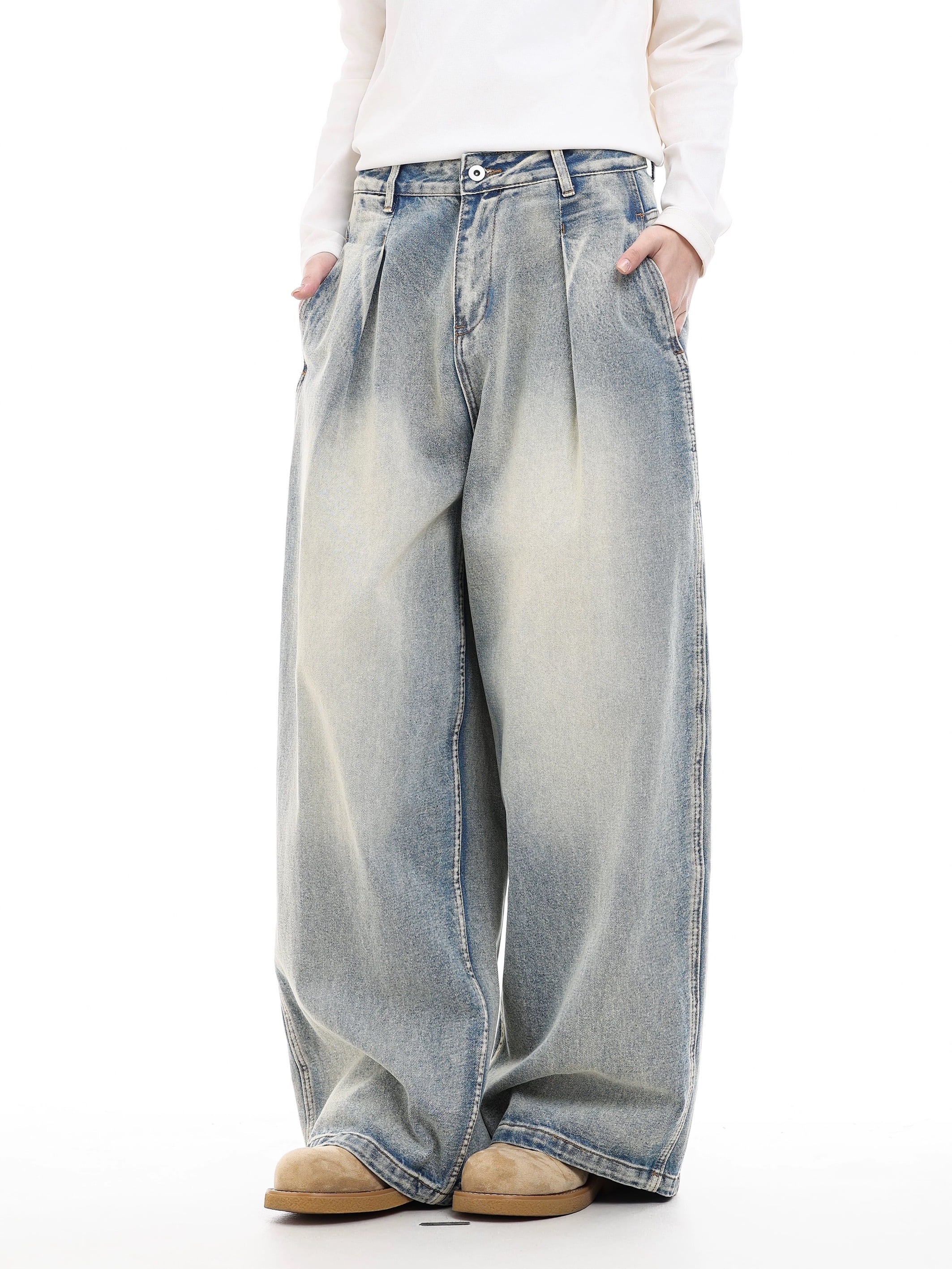 フェードウォッシュ タックワイドデニム / Faded Wash Tuck Wide Denim