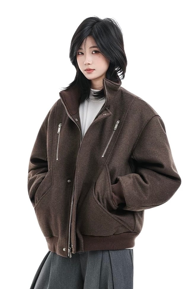 フロントジップと立ち襟デザインにより、首元までしっかり防寒できる構造。
