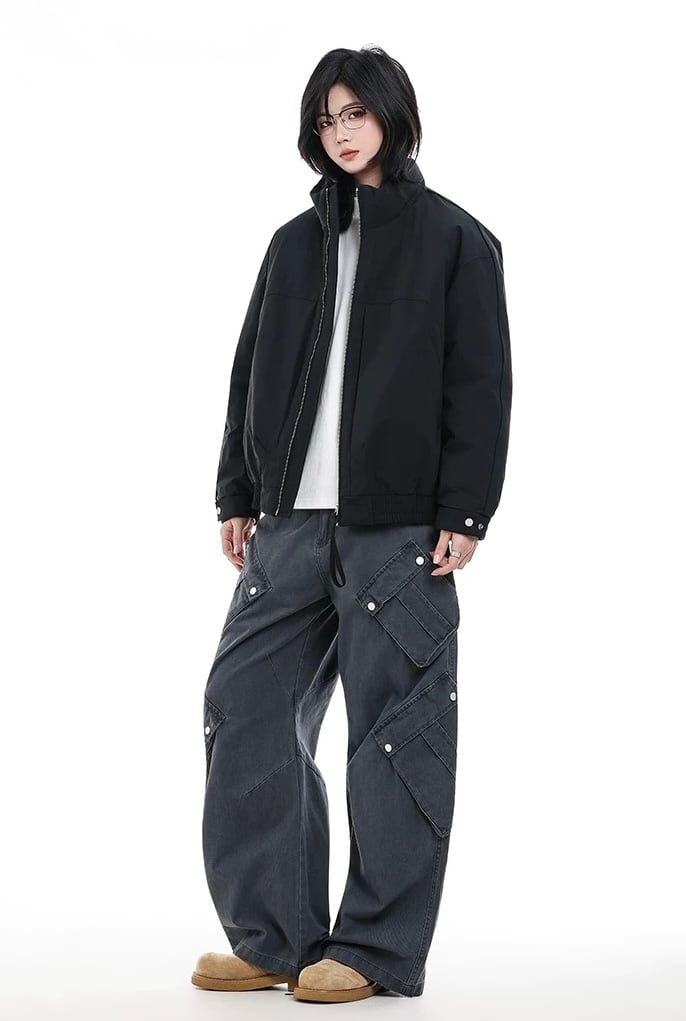 首元まで包み込むスタンドカラー仕様で、マフラー要らずの防寒性。