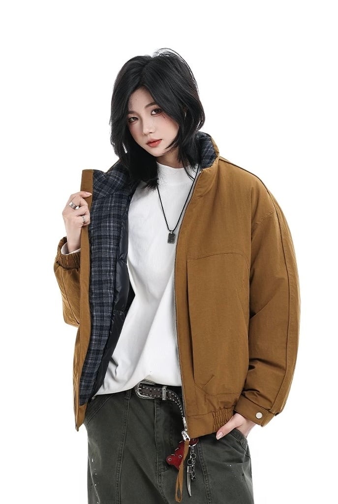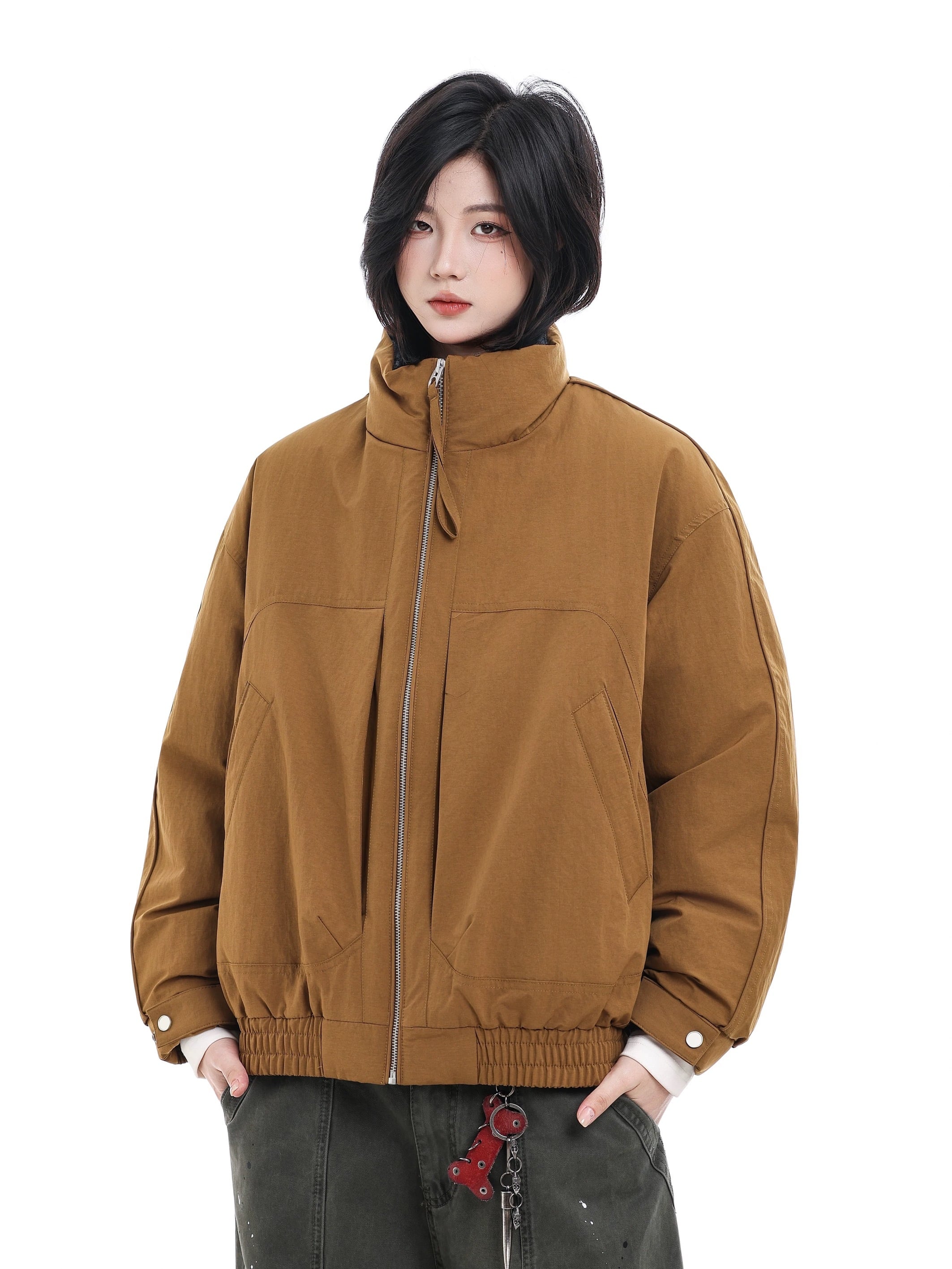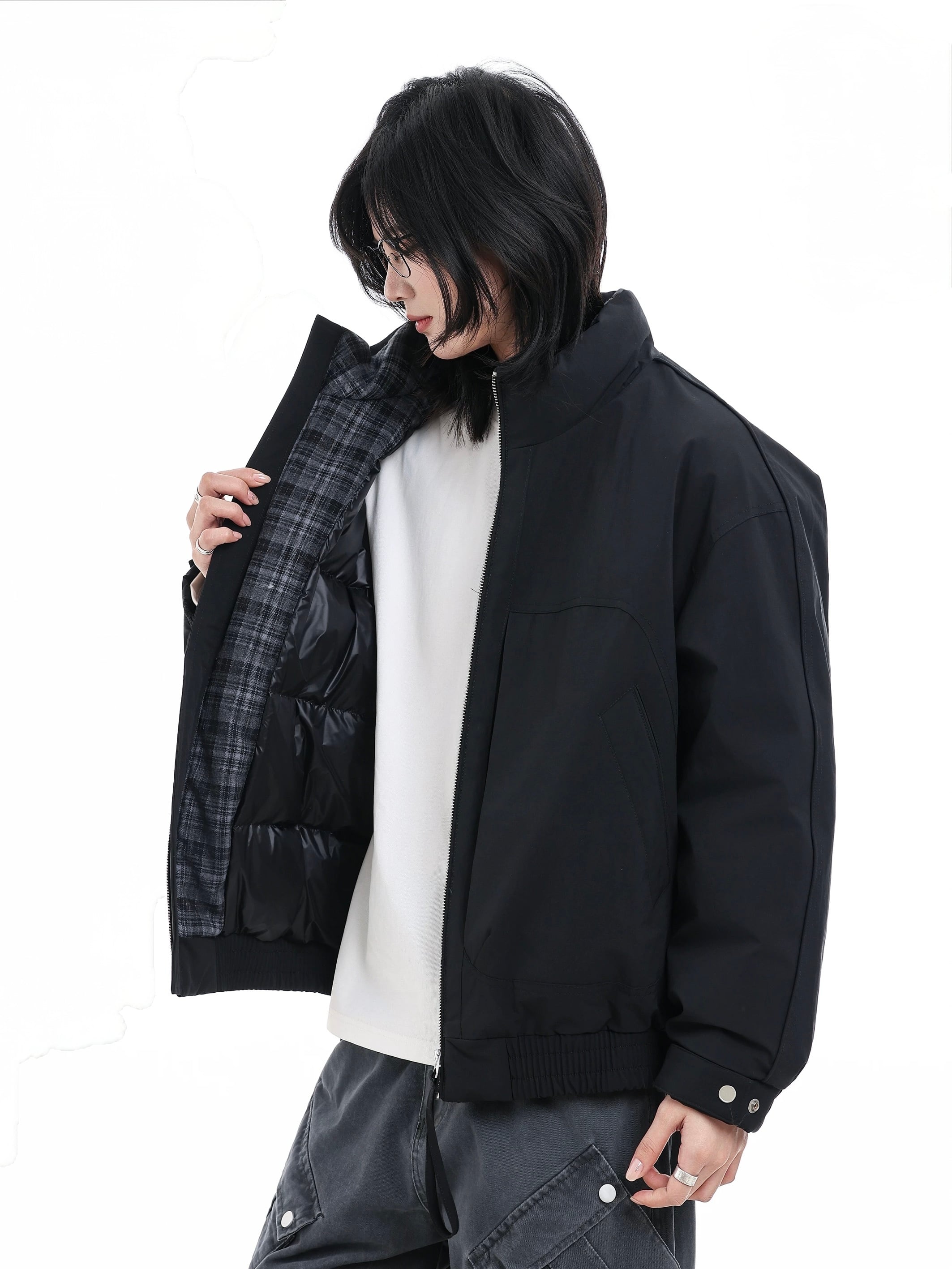 都会的なミニマルデザインに、確かな防寒性を備えたスタンドカラーダウンブルゾン。