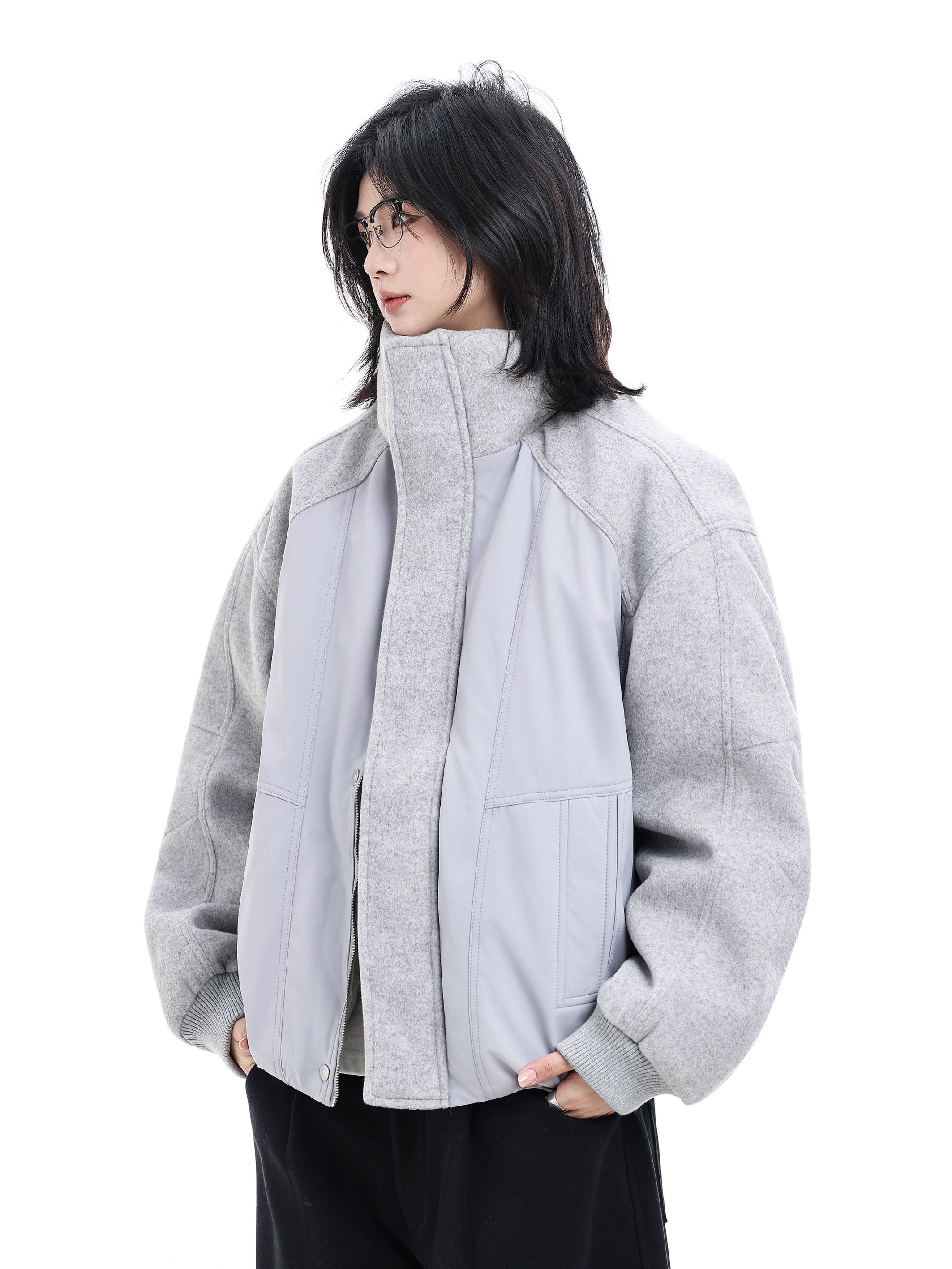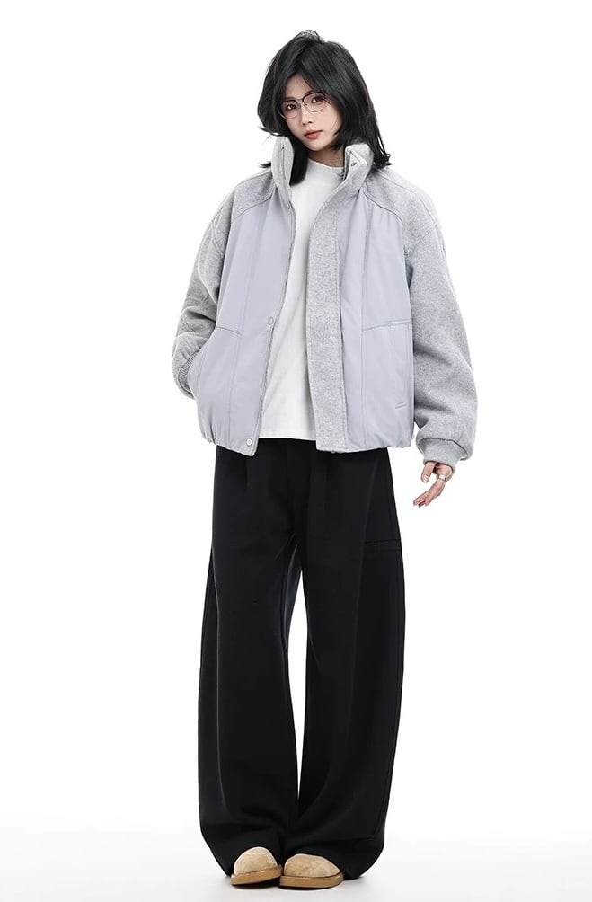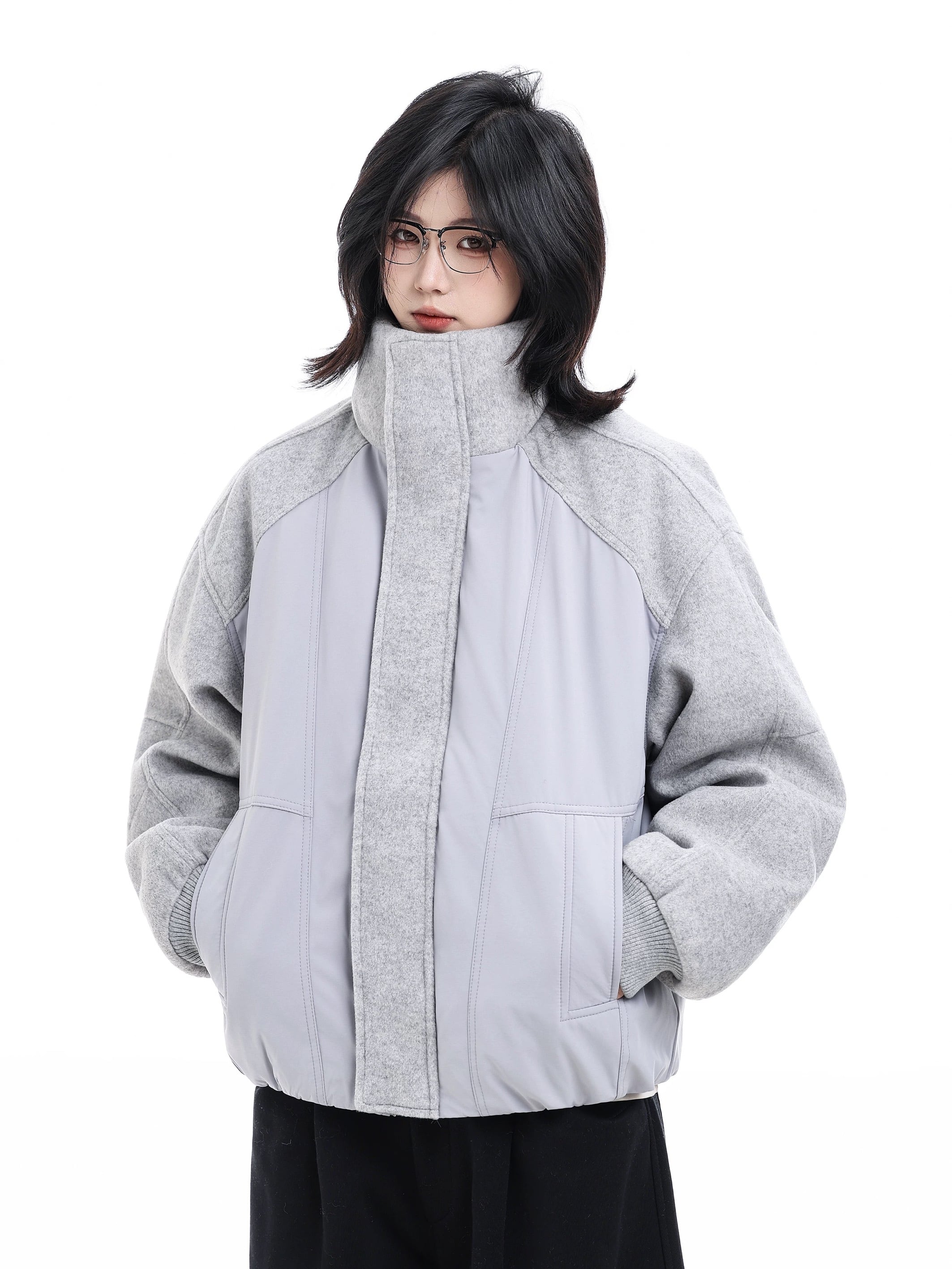 異素材を組み合わせたレイヤードデザインが特徴のダウンジャケット。