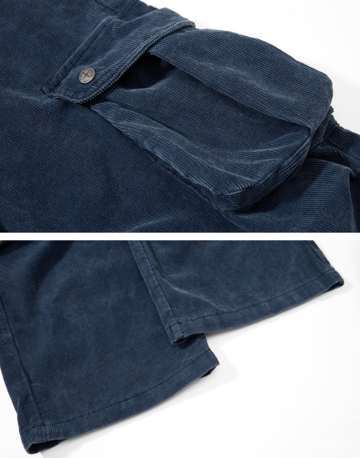 重厚感のあるコーデュロイ素材を使用した、存在感のあるワイドカーゴパンツ。