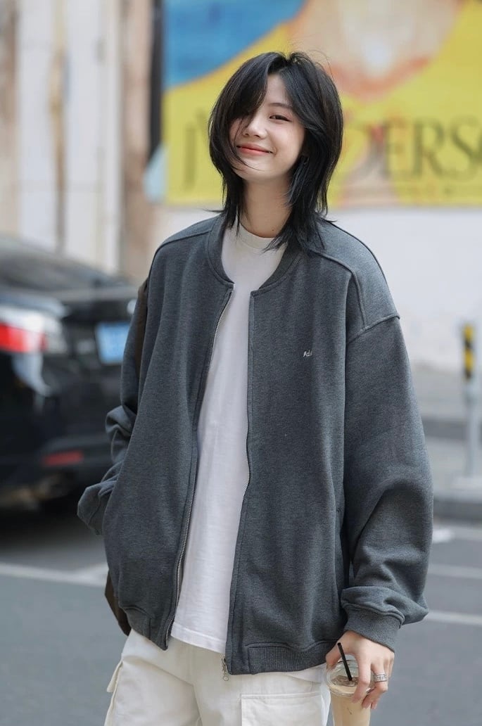 フロントはジップ仕様で、カーディガンの柔らかさとブルゾンの機能性を兼ね備えています。