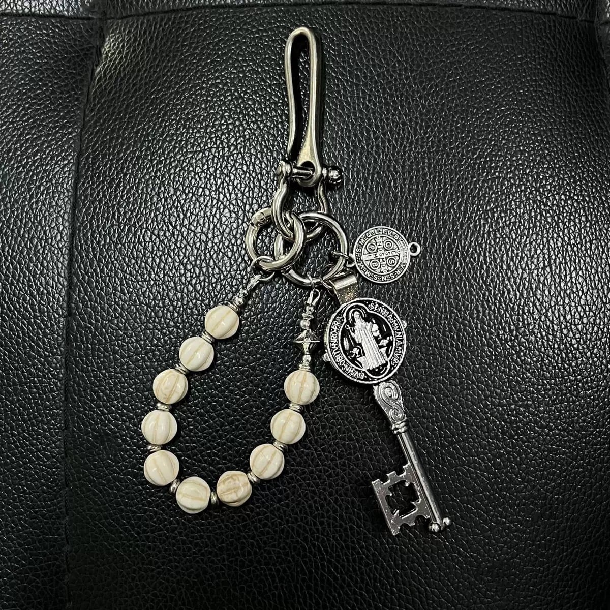 パンツのベルトループやバッグなどに取り付けることで、コーディネートにさりげないポイントを加えてくれます。