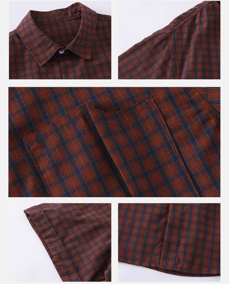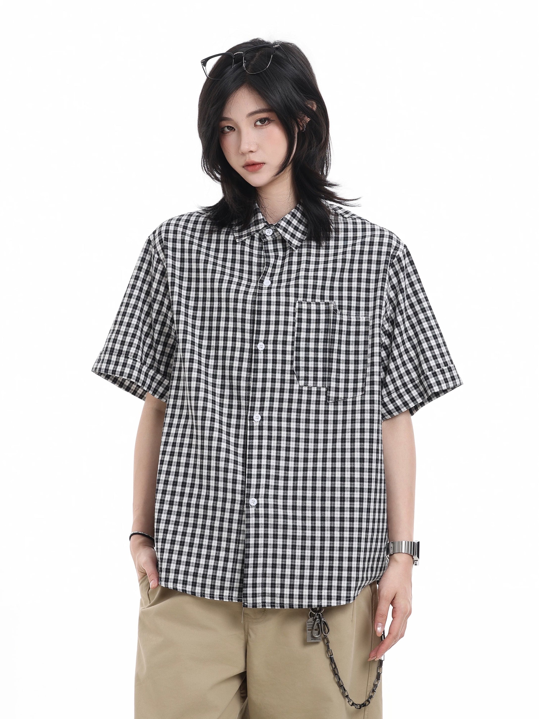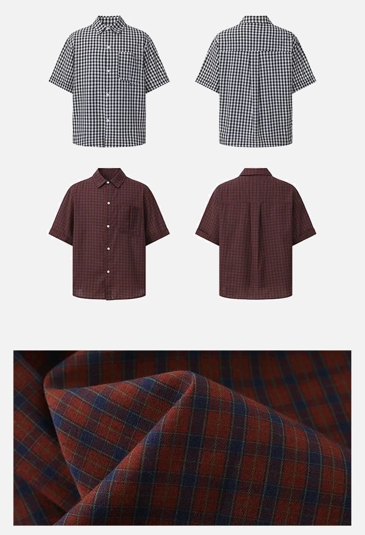 細かなチェック柄が特徴の半袖シャツ。