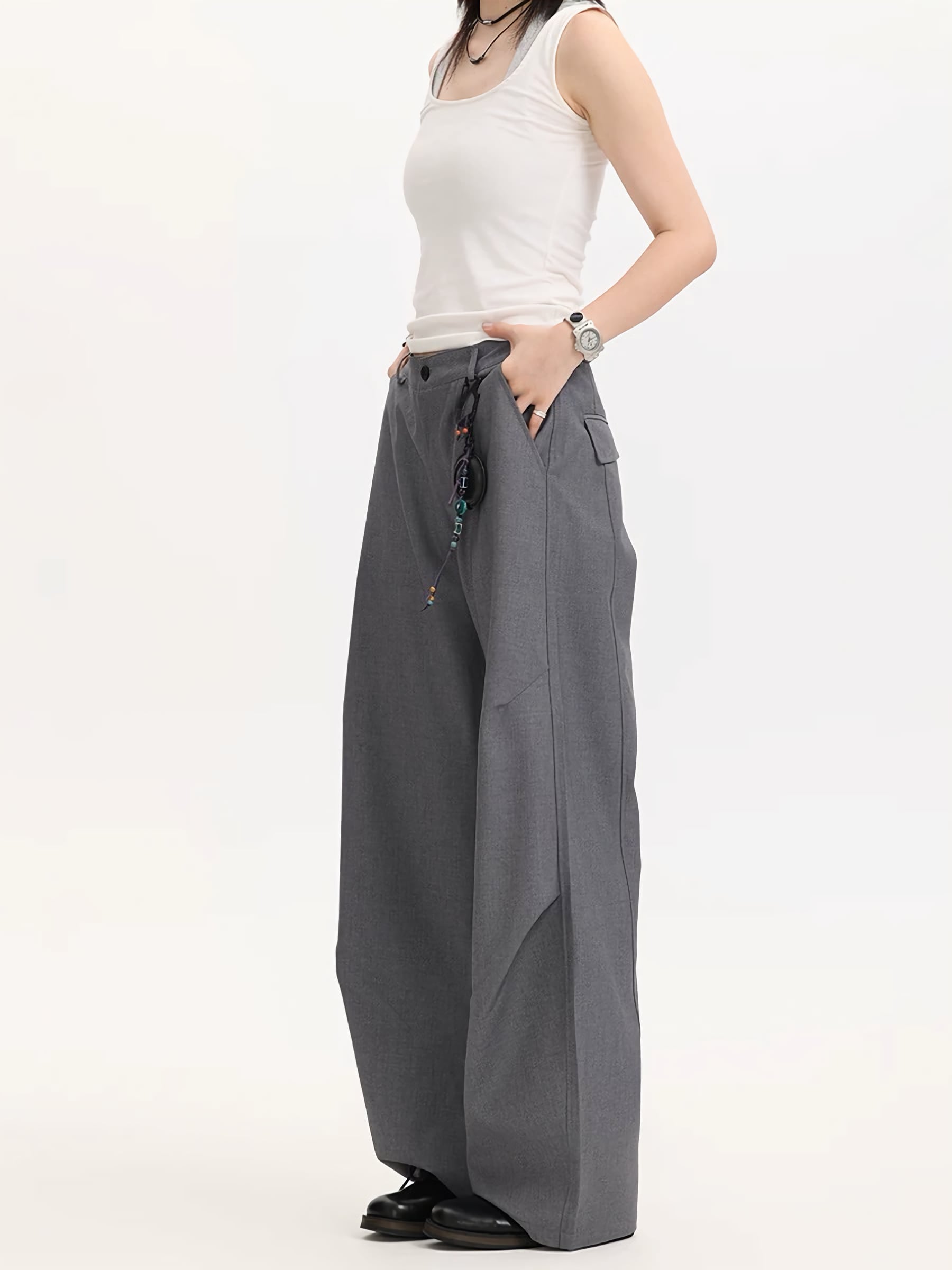 このバナナシルエットスラックスを履いて、新しいスタイルに挑戦してみてください!
