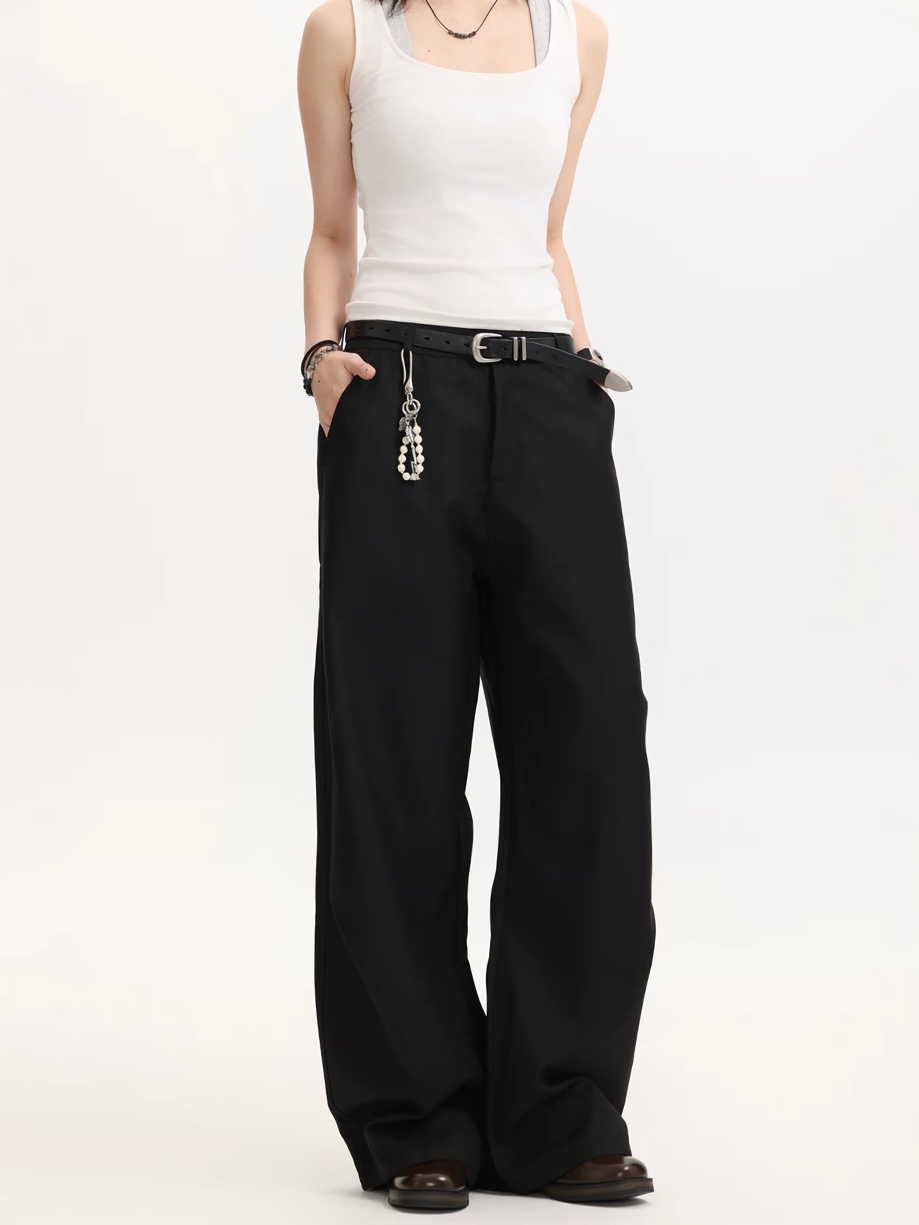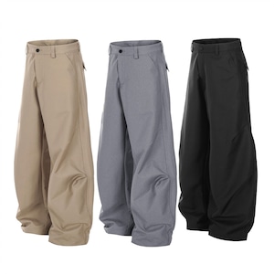 クラシックなスラックスの要素を残しつつも、モード感とリラックス感を絶妙に両立。