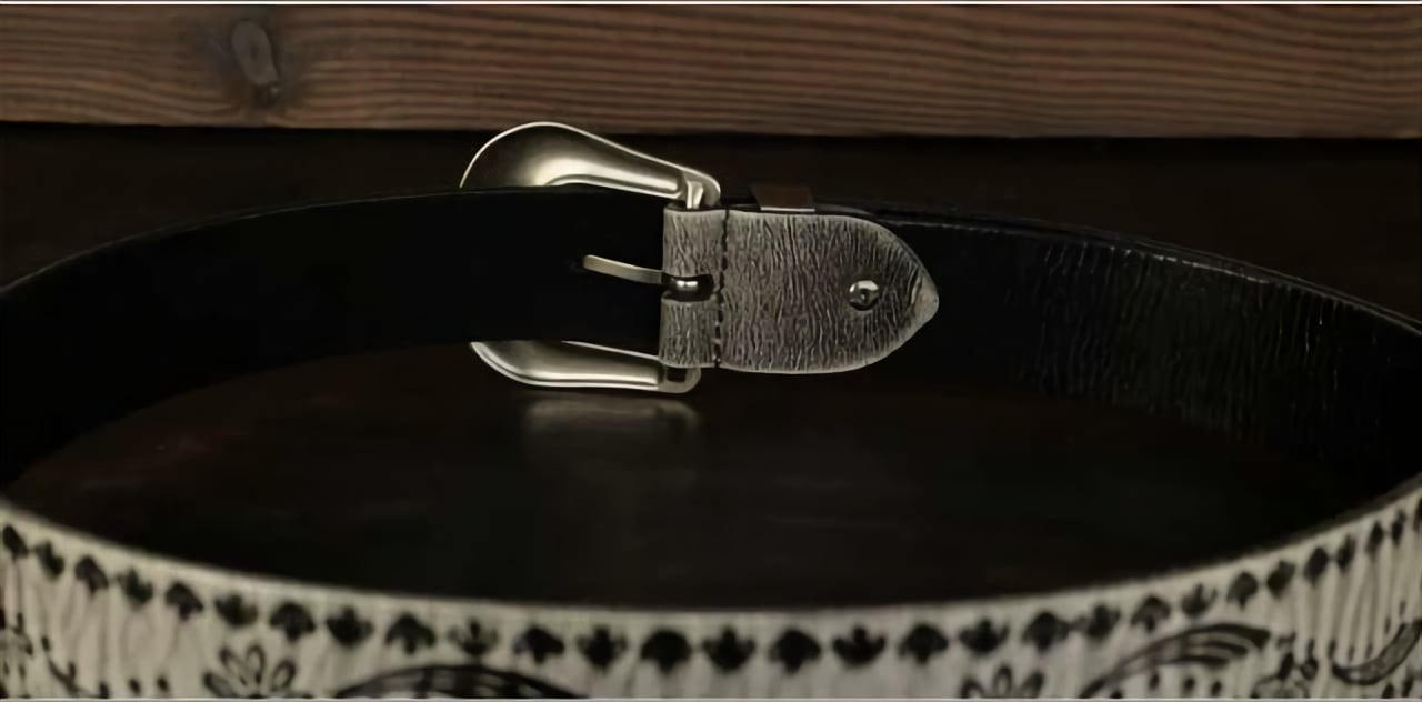 重厚感のあるシルバーバックルも、細かい彫り込みで抜かりなし。