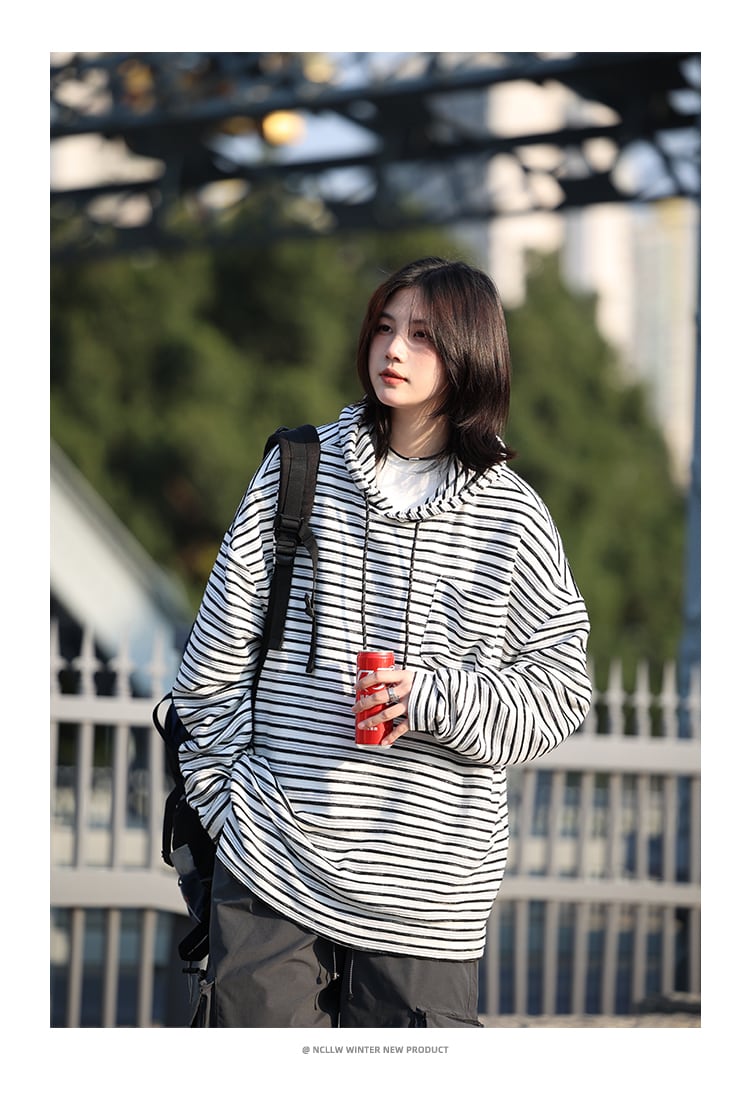 ボーダープルオーバーパーカー / Striped Pullover Hoodie