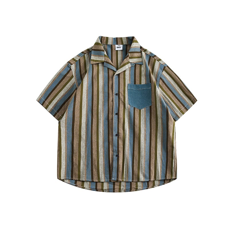 規定のプリントではなく織り感があるマルチストライプ柄のシャツ