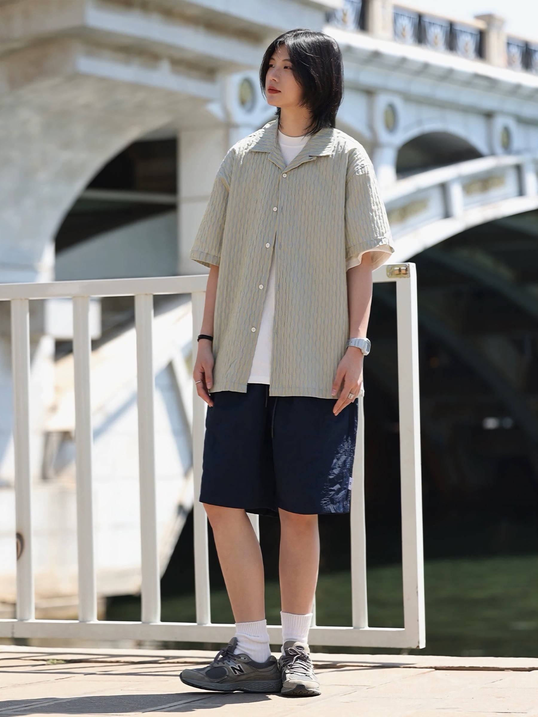 落ち着いたカラーのためTシャツだけでは物足りない夏でも上から羽織るだけで涼しげな印象を与えてくれます。
