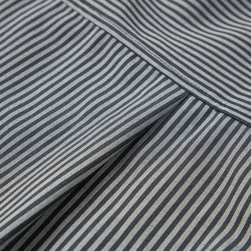 ストライプと裾の切り返しが特徴のルーズフィットタイプのシャツ。