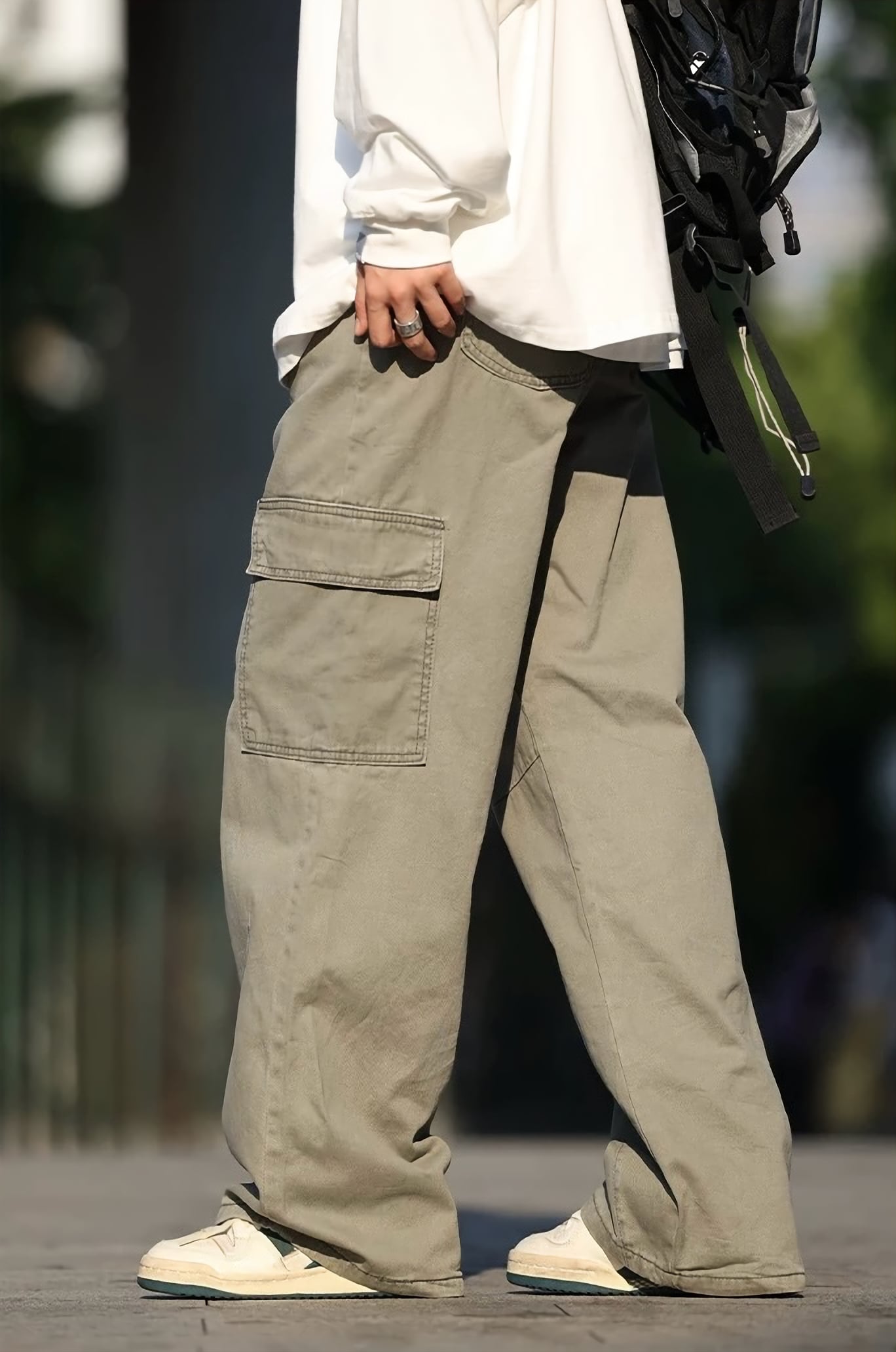 ヴィンテージライクなデニム生地のワイドカーゴパンツ